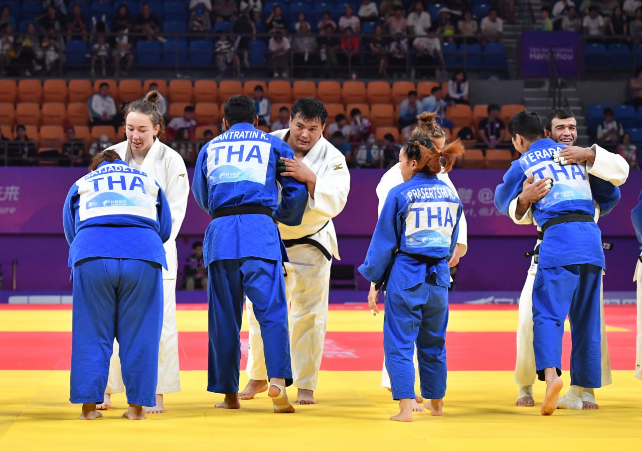Ilias Iliadis boshchiligidagi dzyudo boʻyicha Oʻzbekiston terma jamoasi aralash jamoaviy dasturdagi ishtirokini boshladi. Chorak finaldan bahslarga kirishgan hamyurtlarimiz Tailandni 4:0 hisobida magʻlubiyatga uchratib, yarim finalga yoʻl oldi. Ushbu bosqichda yurtdoshlarimizga Xitoy raqiblik qiladi.