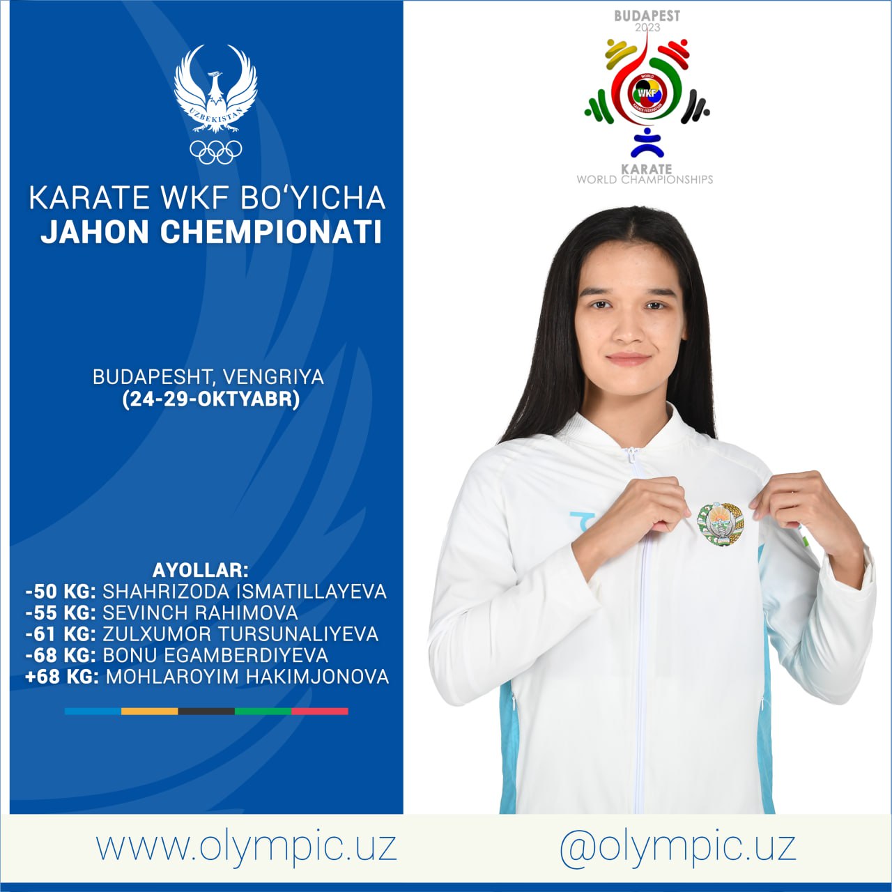 24-29-oktyabr kunlari Vengriya poytaxti Budapesht shahrida karatening WKF yoʻnalishi boʻyicha navbatdagi jahon chempionati boʻlib oʻtadi. Unda ishtirok etadigan Oʻzbekiston terma jamoasi bugun tongda Vengriyaga yoʻl oldi. Tarkibda Xanchjou-2022 Osiyo oʻyinlari chempioni Sevinch Rahimova, shuningdek, boshqa bir qator tajribali sportchilarni koʻrish mumkin. Toʻliq tarkib quyidagicha: