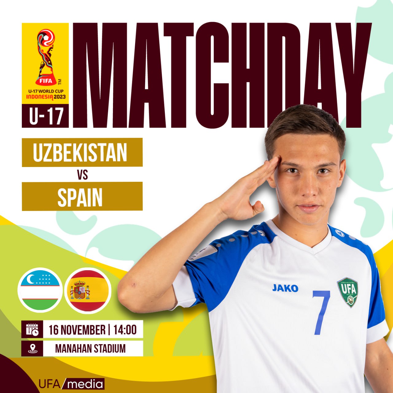 Bugun futbol muxlislari uchun ahamiyatli kun. Indoneziyada oʻtayotgan U-17 yosh toifasidagi jahon chempionatida Oʻzbekiston oʻsmirlar terma jamoasi pley-off yoʻllanmasi uchun bahs olib boradi. Guruhdagi soʻnggi turda hamyurtlarimizning raqibi Ispaniya jamoasi boʻladi.