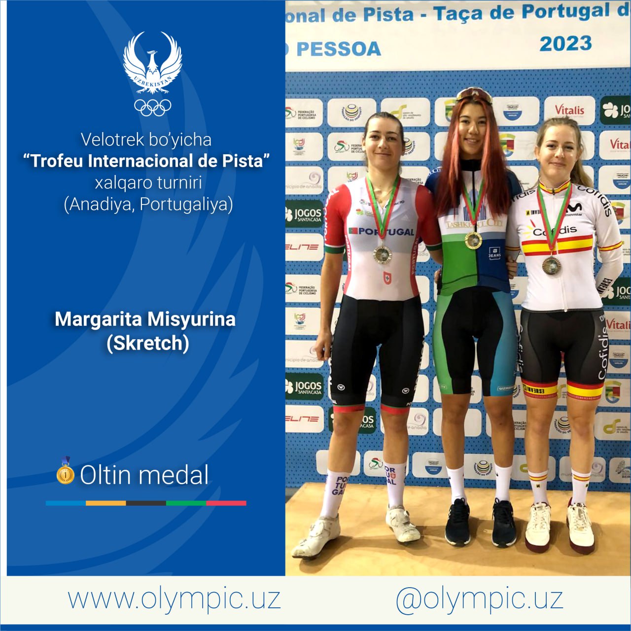 Ayni kunlarda Portugaliyada velosportning trek yo’nalishi bo’yicha “Trofeu Internacional de Pista” xalqaro musobaqasi bo’lib o’tmoqda. Unda ishtirok etayotgan O’zbeksiton terma jamoasi a’zosi Margarita Misyurina oltin medalni qo’lga kiritdi.