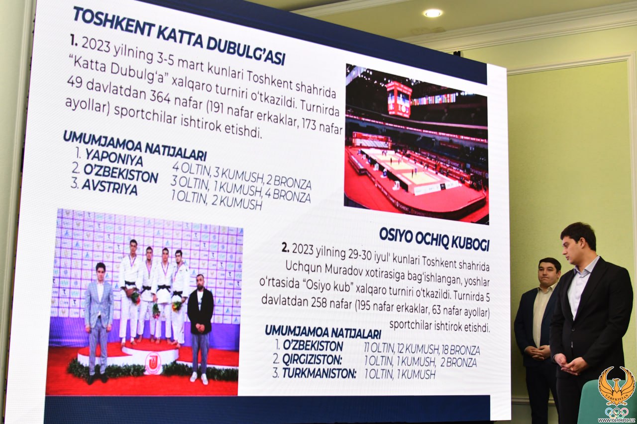 Tadbir avvalida federatsiya Bosh kotibi Azizjon Sobirov 2023-yil amalga oshirilgan ishlar boʻyicha taqdimot oʻtkazdi. Unga koʻra, sportchilarimiz yil davomida oʻtgan turli yosh toifalaridagi xalqaro musobaqalarda jami 99 ta oltin, 72 ta kumush va 149 ta bronza medallarini qoʻlga kiritishgan. Shuningdek, mutaxassis dzyudo maktablarining faoliyati, yurtimiz boʻylab ushbu sport ommaviyligini oshirish boʻyicha qilinayotgan ishlarga ham toʻxtalib oʻtdi.