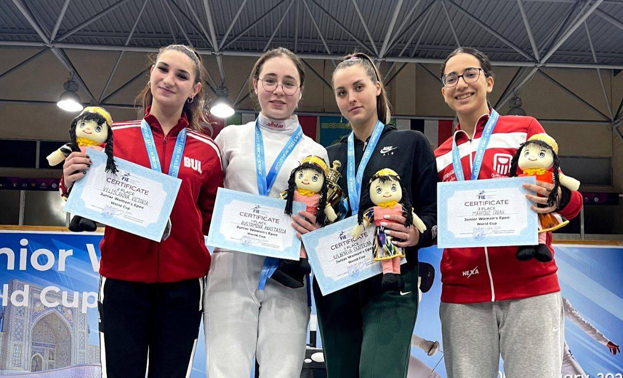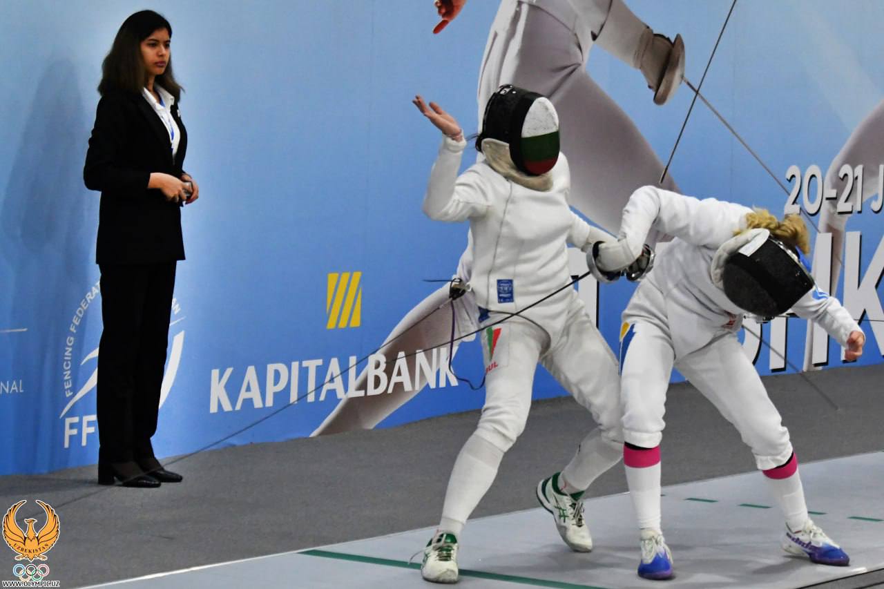 Poytaxtimiz mezbonlik qilayotgan qilichbozlik bo’yicha yoshlar o’rtasidagi Jahon kubogi bosqichida birinchi kun ortda qoldi. Shpagachi qizlar o’rtasida kechgan yakkalik dasturida neytral maqomda ishtirok etayotgan Anastasiya Rustamova oltin medalni qo’lga kiritdi.
