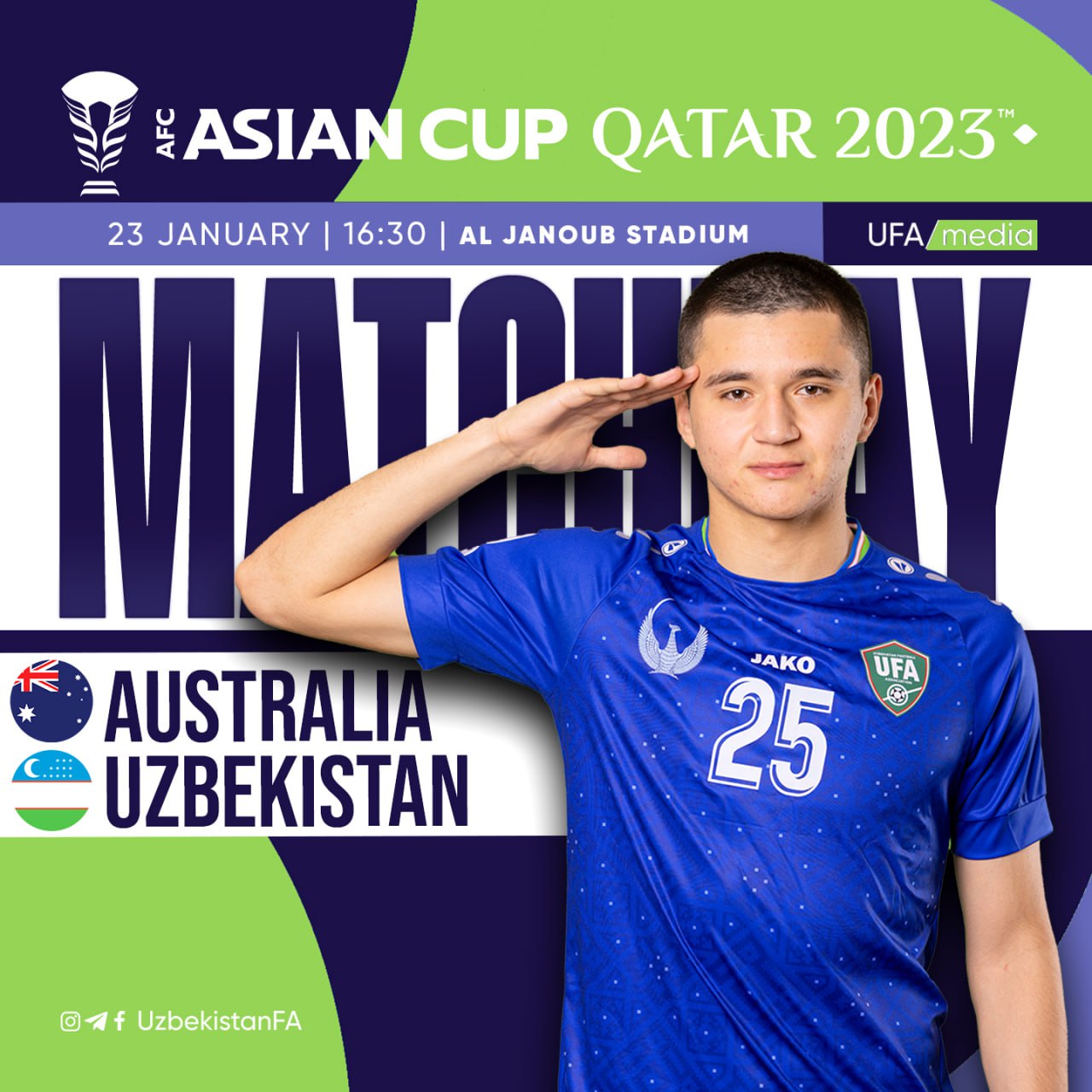 Qatarda futbol bo’yicha Osiyo kubogi guruh bosqichining 3-tur bahslari o’tkazilmoqda. Bugun O’zbekiston milliy terma jamoasi kvartetdagi asosiy raqib hisoblanmish Avstraliyaga qarshi bahs olib boradi. Toshkent vaqti bilan 16:30 da start oladigan o’yinda yigitlarimizga omad tilaymiz!