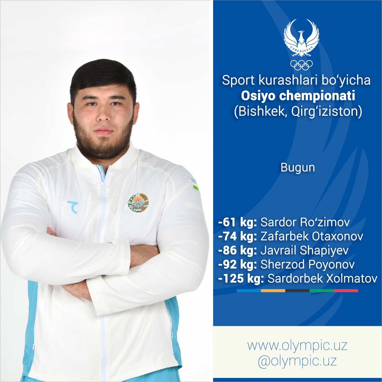 Bugun Qirgʻizistonda oʻtayotgan sport kurashlari boʻyicha Osiyo chempionatining ikkinchi kun bellashuvlari oʻtkaziladi. 5 vazn toifasidagi bahslardan soʻng erkin kurash ustalarining ishtiroki yakunlanadi. Kun davomida gilamga chiqadigan hamyurtlarimiz musobaqani quyidagi raqiblariga qarshi boshlashadi: