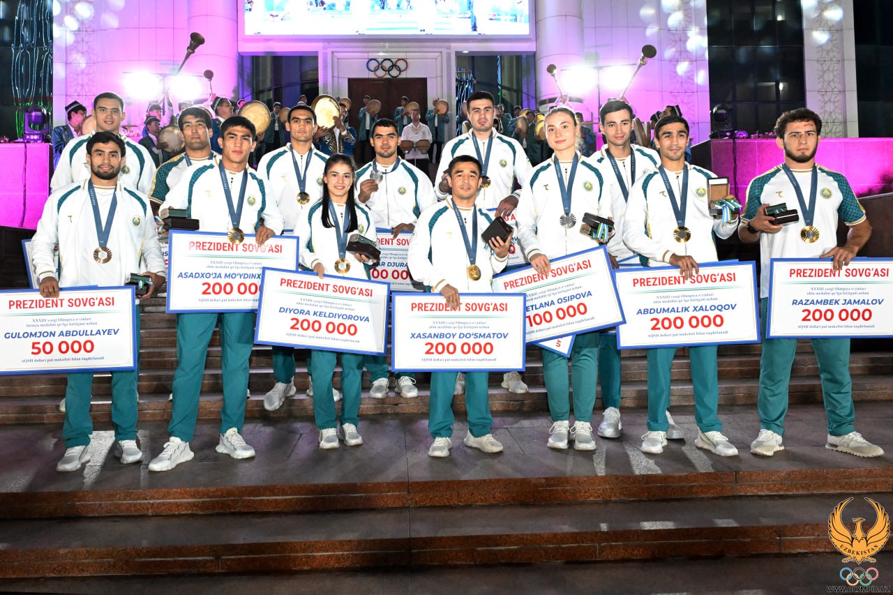 Tadbirning ikkinchi qismi Milliy Olimpiya qo‘mitasida o‘tdi. Unda Parij-2024 qahramonlariga davlat rahbarining sovg‘alari topshirildi. Prezident qaroriga muvofiq,