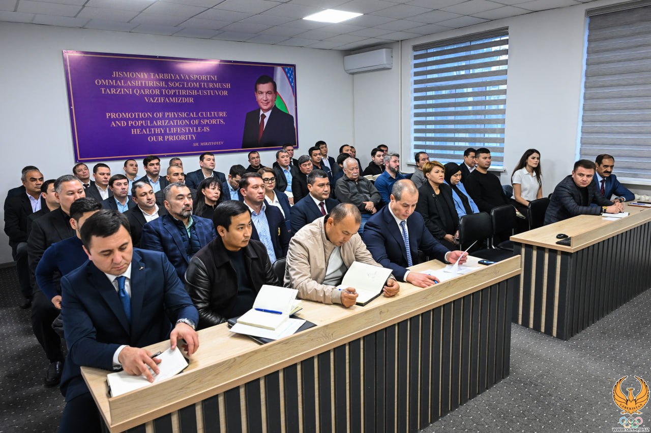 Yakunda federatsiya va assotsiatsiyalarning poytaxtimizdagi bo‘limlari vakillari, murabbiylar, shuningdek, ROPSTTM mutasaddilari bilan uchrashuv o‘tkazildi. Unda yosh sportchilarni xalqaro musobaqalarga munosib tayyorlash, sport ta’limi sohasida yangi metodikalar ustida ishlash kabi mavzularda suhbatlashildi.