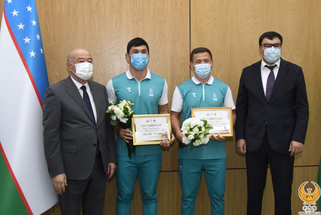 Tantanali marosimda XXXII yozgi Olimpiya o‘yinlarining 10 nafar (7 erkak, 3 ayol) litsenziati hamda ularning murabbiylariga bir martalik pul mukofotlari topshirildi. Belgilanganidek, dzyudochilar 100 mln, ularning murabbiylari 50 mln so‘mlik sertifikatlarni qabul qilib olishdi. Dzyudochilar nomidan so‘zga chiqqan Davlat Bobonov, Gulnoza Matniyazova, terma jamoa murabbiyi O‘ktam Rahmonov bildirilgan yuksak ishonchni oqlash uchun Olimpiadada bor imkoniyatlarini ishga solishga vaʼda berishdi.