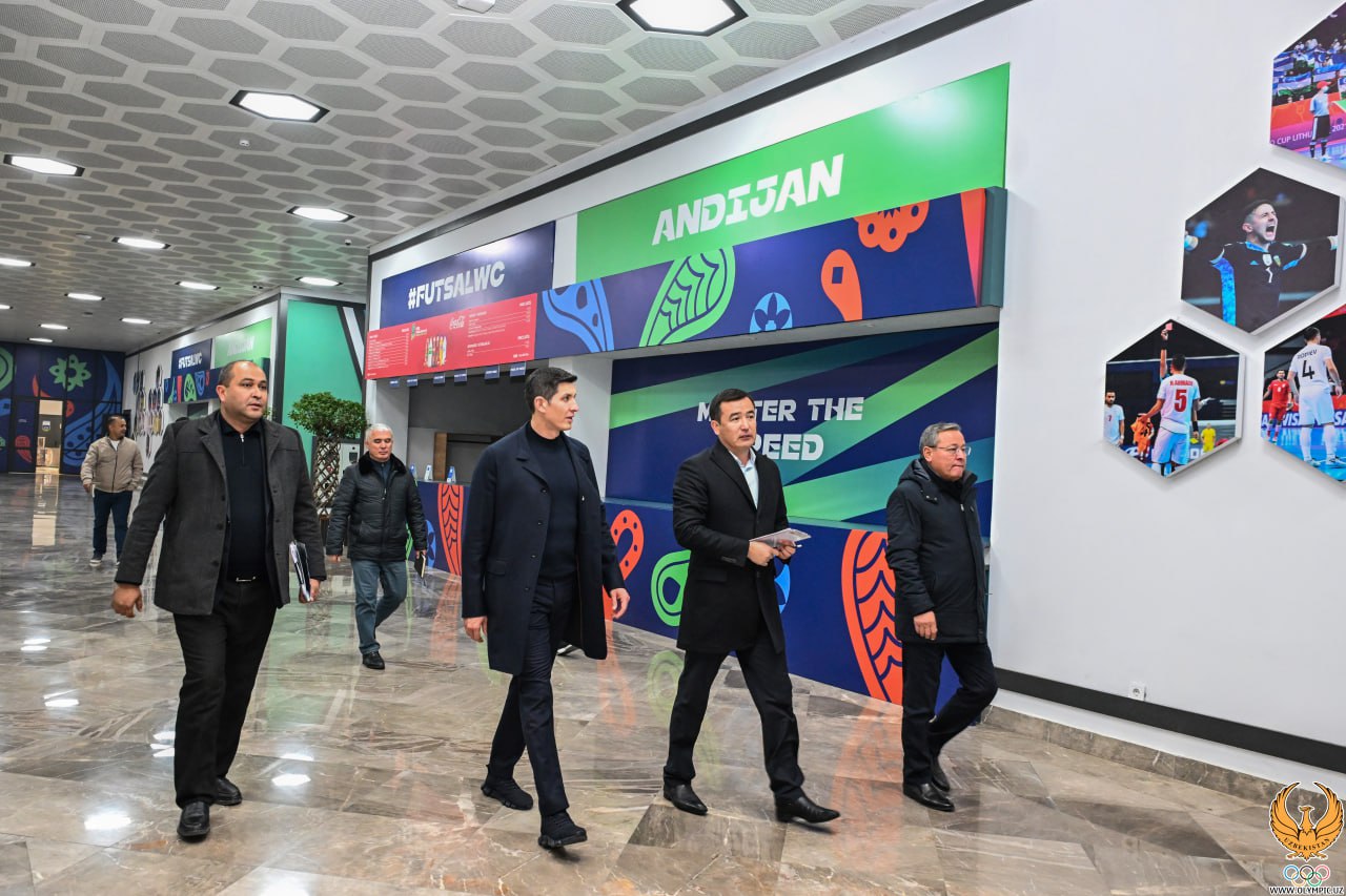 Dastlab ishchi guruh Andijon shahridagi “Universal” sport majmuasiga tashrif buyurdi. Butkul yangicha qiyofa ochgan arena joriy yil futzal boʻyicha jahon chempionatining 8 ta uchrashuviga mezbonlik qildi. Hozirgi kunda majmuada jamoaviy sport turlari bilan shugʻullanish uchun qulay imkoniyat mavjud. Mutasaddilar oʻrganish ishlari davomida mazkur jihatni ham inobatga olgan holda yirik musobaqalarga tayyorgarlik koʻrishda ushbu arena imkoniyatlaridan foydalanish, qolaversa, unda Respublika va xalqaro miqyosdagi musobaqalarni oʻtkazish borasidagi takliflarni ilgari surishdi. Bundan tashqari, Baliqchi va Asaka tumanlaridagi BOʻSM va IBOʻSMlarning ham faoliyati oʻrganildi.