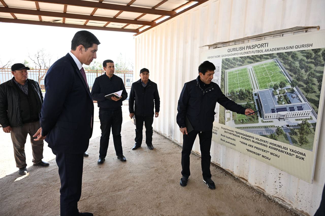 Ishchi guruh safar davomida viloyat futbol akademiyasi hamda gimnastika sport turlariga ixtisoslashtirilgan sport maktabining faoliyati bilan ham tanishdi. Shuningdek, Qarshi shahridagi yengil atletika maydoni, aralash jang sanʼati turlari, dzyudo va boks zallarini ham koʻzdan kechirib, oʻquvchilar bilan samimiy suhbatlashishdi.
