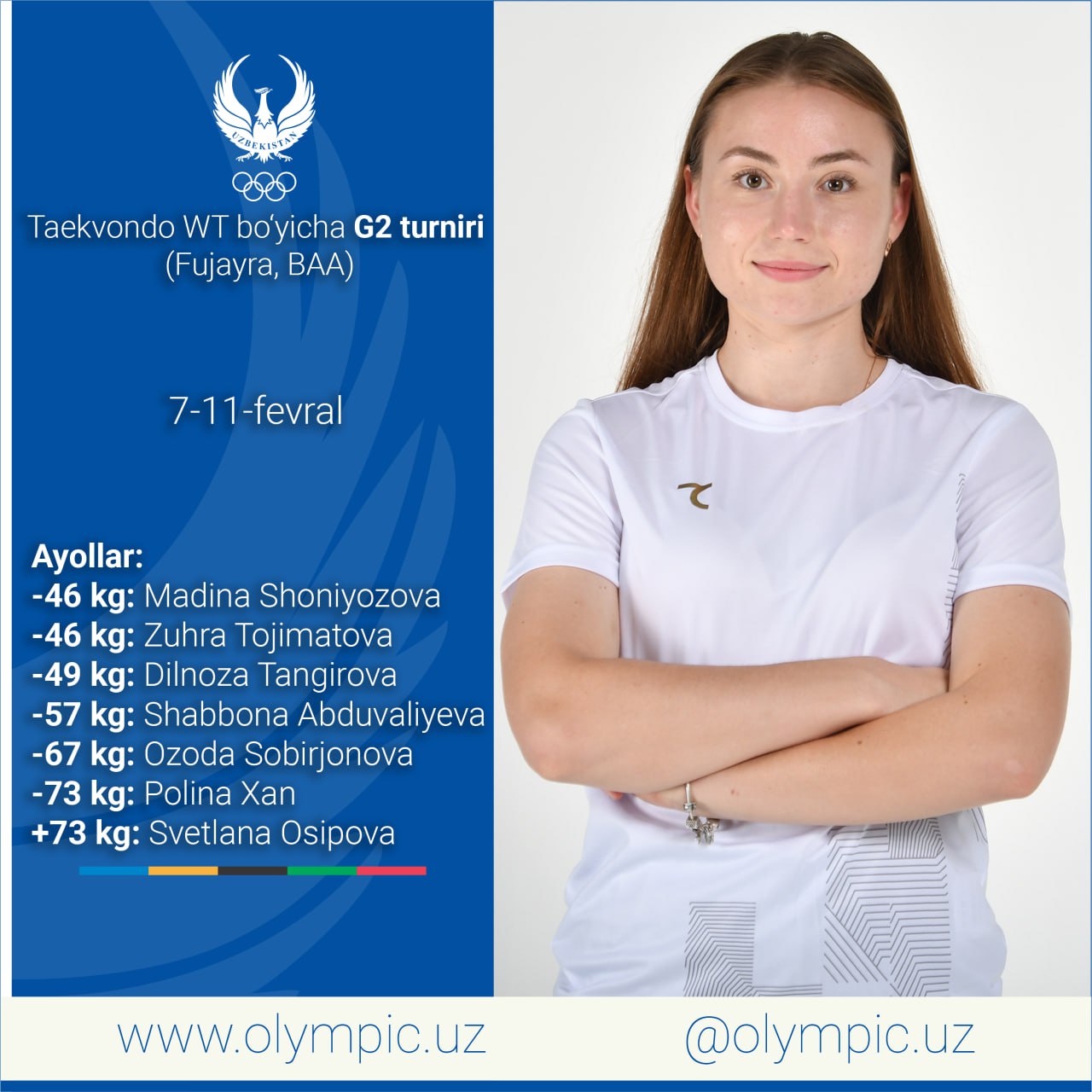7-11-fevral kunlari BAAning Fujayra shahrida taekvondo WT boʻyicha G2 tasnifidagi xalqaro musobaqa boʻlib oʻtadi. Mazkur turnir Oʻzbekiston terma jamoasi uchun joriy yil hisobidan dastlabki start boʻladi. Unda ishtirok etadigan sportchilarimiz tarkibi bilan tanishing: