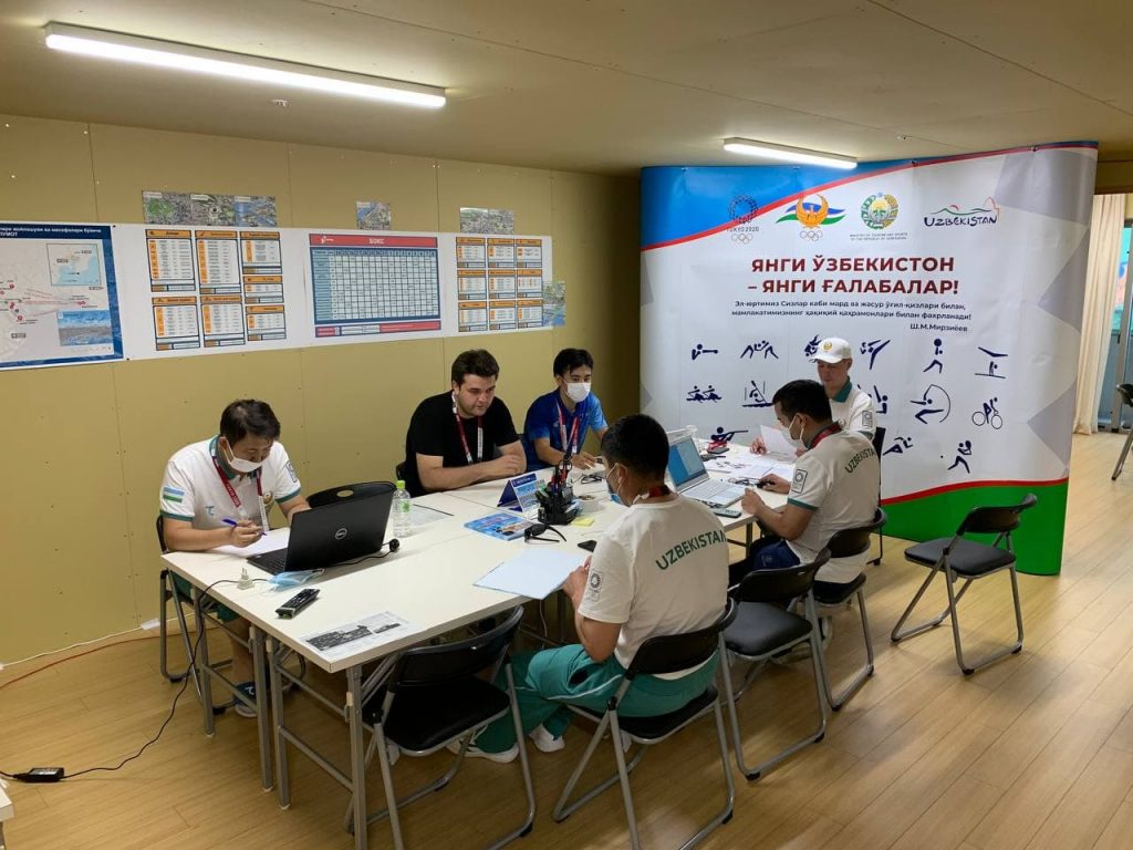 Butun dunyodagi epidemiologik vaziyat sabab ijtimoiy masofa, mehmonlarning salomatligi juda qattiq nazorat ostida bo‘ladi. MOQ vakillari hozirda delegatsiyamiz aʼzolari uchun xizmat qiladigan transport vositalari, ular yashaydigan va harakatlanadigan hududni o‘rganib chiqmoqda. Mazkur guruhdan MOQ Xalqaro aloqalar departamenti direktori Kamoliddin Ergashev, Olimpiya sport turlari faoliyatini koordinatsiya qilish departamenti direktor o‘rinbosari Hikmat Toshmatov, Xalqaro aloqalar departamenti bosh mutaxassisi Nozim Atakulov, Tezkor shtab aʼzosi Murod Choriyev va RSTIAM shifokori, COVID-ofitser Aʼzamjon Soliyev o‘rin olishgan.