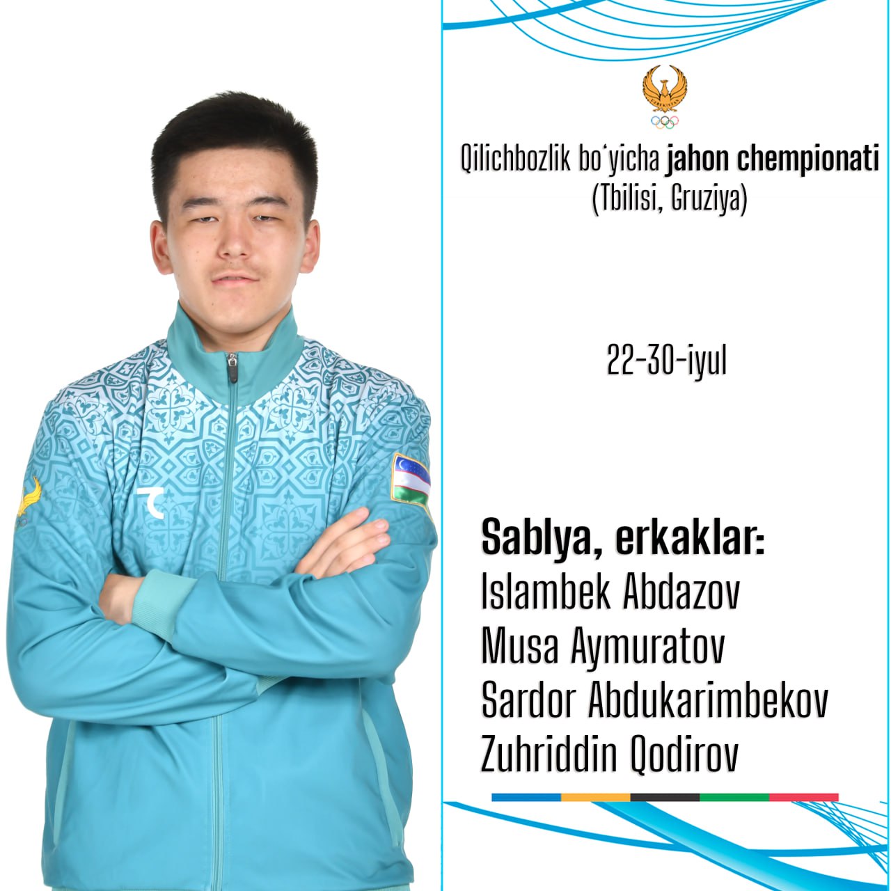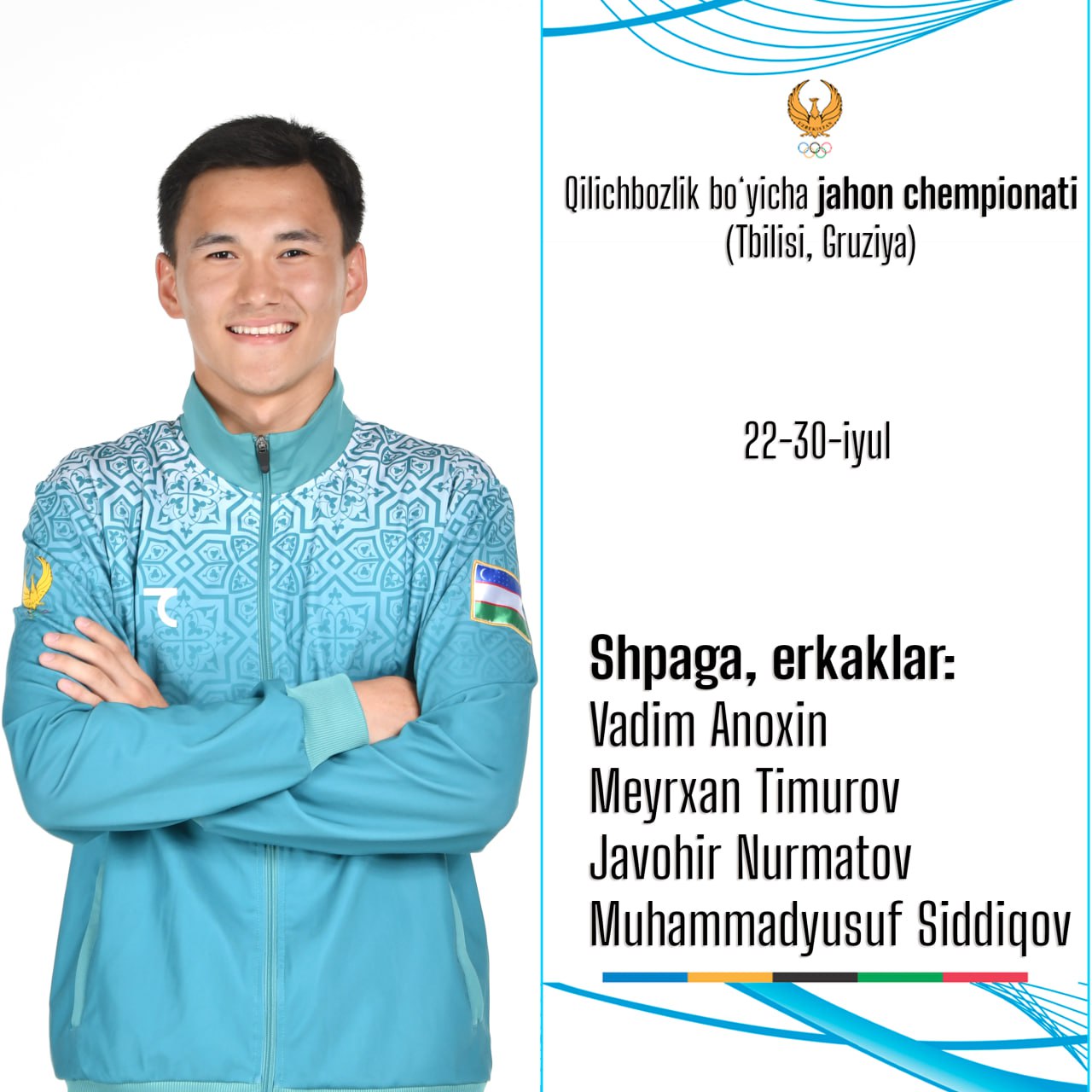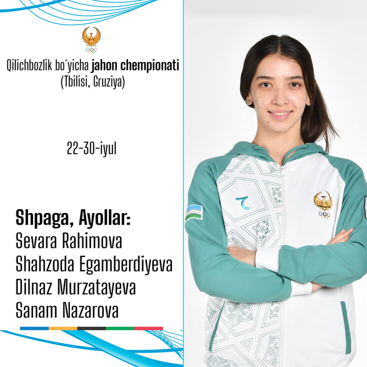 22-30-iyul kunlari Gruziyaning Tbilisi shahrida qilichbozlik boʻyicha jahon chempionati boʻlib oʻtadi. Oʻzbekiston qilichbozlik federatsiyasi mazkur musobaqada ishtirok etadigan terma jamoamiz tarkibini maʼlum qildi. Unga koʻra, quyidagi sportchilar boʻlajak dunyo birinchiligida ishtirok etadi: