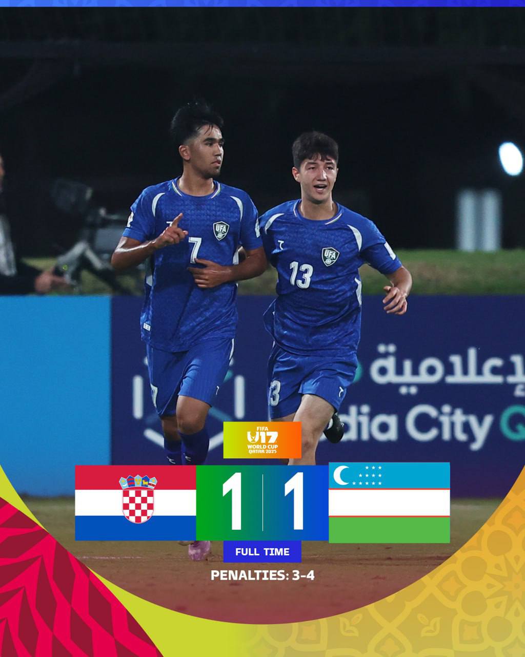 Futbol boʻyicha Oʻzbekiston oʻsmirlar terma jamoasi jahon chempionatidagi yurishini davom ettiradi. Keyingi bosqich gʻolibini penaltilar seriyasi aniqlab bergan bahsda Xorvatiya magʻlub etildi. Endi jamoamiz chorak final yoʻllanmasi uchun 18-noyabrda Italiyaga qarshi oʻynaydi.