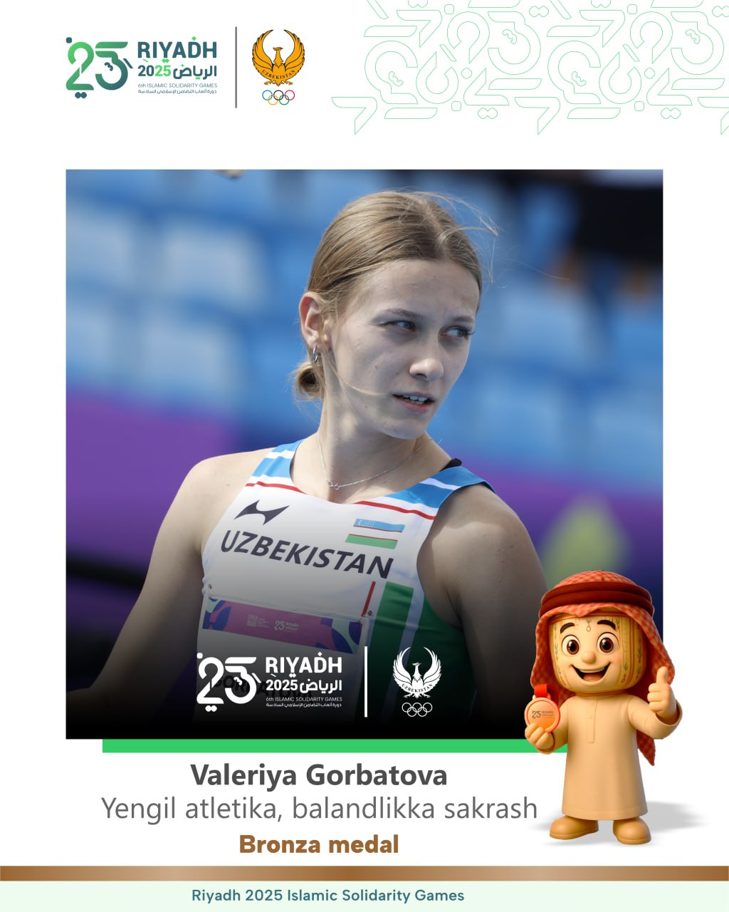 Bugundan bahslarga kirishgan yengil atletikachilarimiz delegatsiyamiz gʻaznasini boyitishni boshlashdi. Balandlikka sakrash bahslarida qatnashgan Barnoxon Sayfullayeva 1.84 metr bilan oltin, Valeriya Gorbatova esa 1.81 metr bilan bronza medaliga sazovor boʻlishdi.