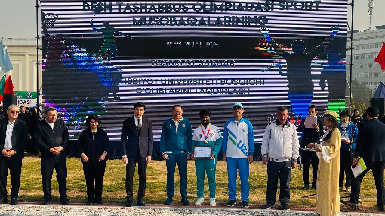 Toshkent tibbiyot universitetida talabalar ligasi sport musobaqalarining ochilish marosimi hamda talabalar oʻrtasida oʻtkazilgan “5 tashabbus Olimpiadasi” bellashuvlarining gʻolib va sovrindorlarini taqdirlash tadbiri tashkil etildi. Oliy oʻquv yurtlari talabalarida sportga qiziqishini oshirish va sogʻlom turmush tarzini targʻib etishga qaratilgan mazkur tadbir koʻtarinki ruhda boʻlib oʻtdi.