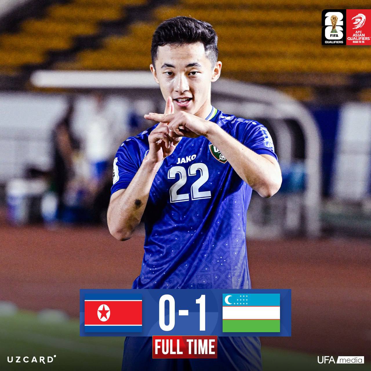 JCh-2026 saralash bosqichi KXDR 0 – 1 Oʻzbekiston Gol: A.Fayzullayev 44’ Futbolchilarimizdan ir…