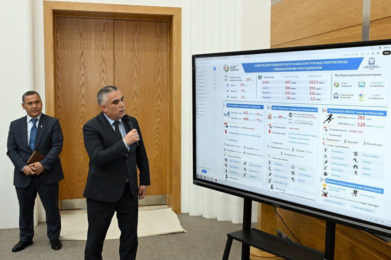 Mazkur tadbirda tuman hokimlari, poytaxtimizdagi oliy oʻquv yurtlari rektorlari hamda qator mutasaddi tashkilotlar vakillari ishtirok etishdi. Yigʻilishda “Yangi Oʻzbekiston Olimpiya choʻqqilari”, “Yangi Oʻzbekiston talabalar Olimpiadasi”, “Besh tashabbus Olimpiadasi” kabi ommaviy sport musobaqalarini tashkil etishga doir masalalar atroflicha koʻrib chiqildi.
