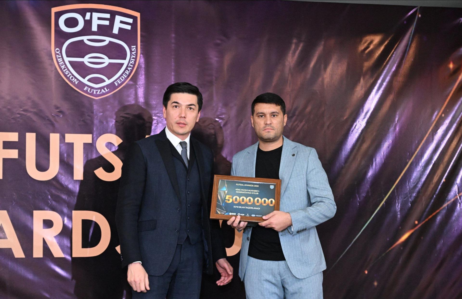 Bugun “Futsal Awards-2025” taqdirlash marosimi boʻlib oʻtdi. Unda oʻzbek futzalida yil davomida yorqin oʻyin namoyish etgan sportchilar, shuningdek, samarali faoliyat olib borgan murabbiy va boshqa soha mutaxassislari taqdirlanishdi.