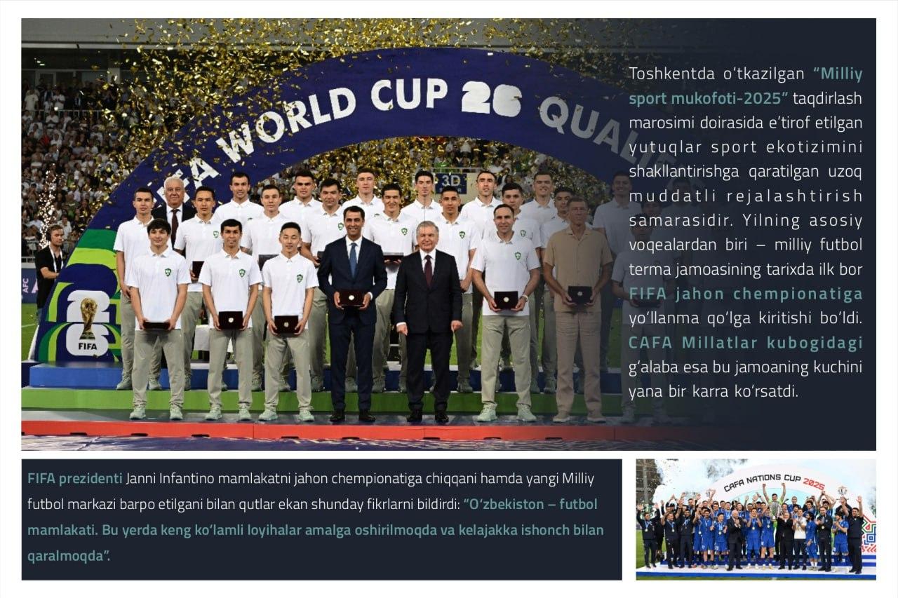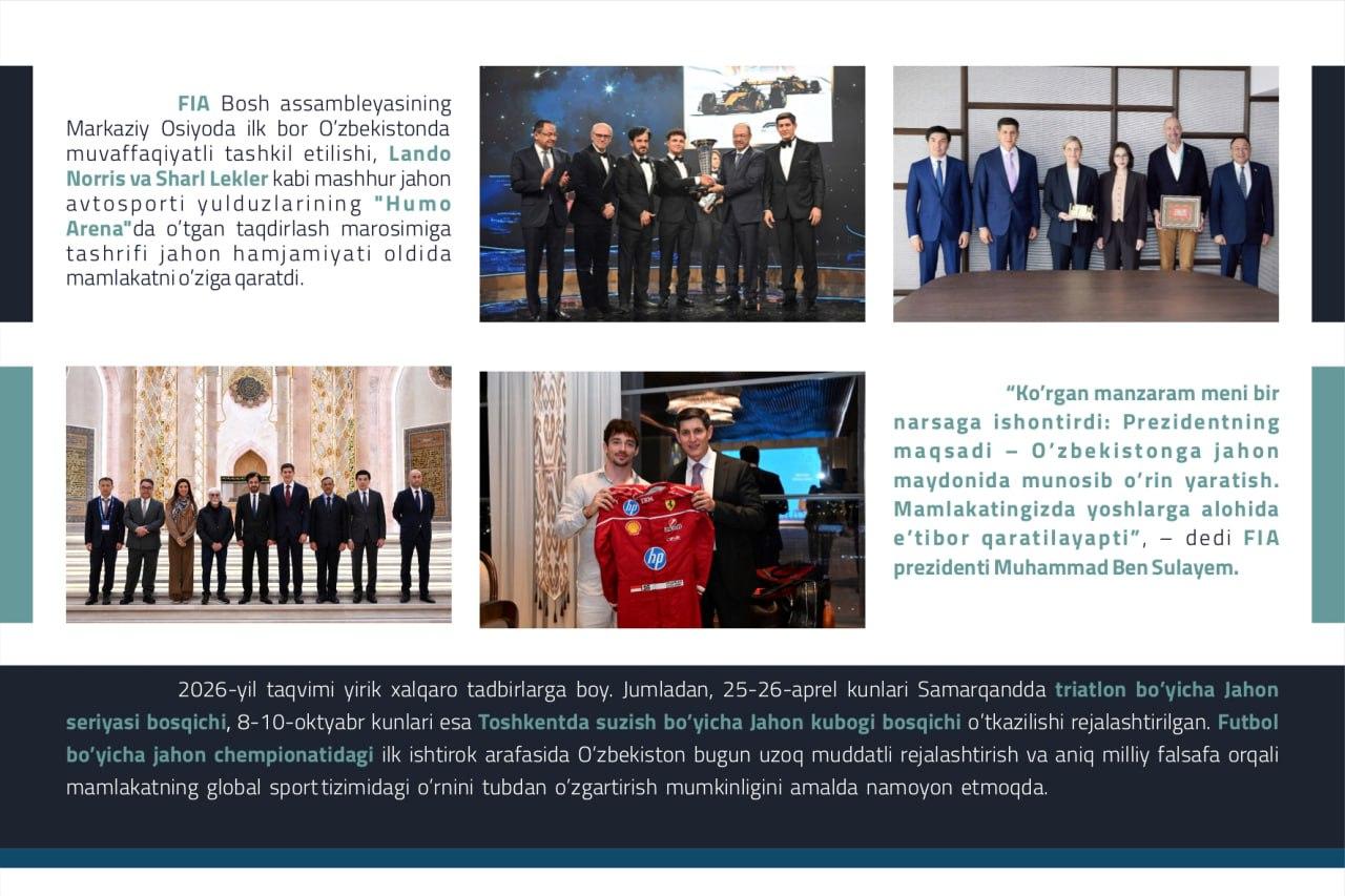 Oʻzbek sportida soʻnggi yillarda erishilayotgan yutuqlar, sohada amalga oshirilayotgan islohotlar nafaqat jahon hamjamiyati, balki ommaviy axborot vositalarining ham eʼtiborini tortmoqda. Insidethegames.biz, sports-insight.co.uk va Yevropaning boshqa koʻplab taniqli nashrlari yurtimiz sporti uchun gʻoyat sermahsul oʻtgan 2025-yil yakunlari, shuningdek, Prezidentimizning sohani qoʻllab-quvvatlab kelayotgani haqida tahliliy maqolalar chop etmoqda. Ularning tarjimasi ushbu slaydlarda.