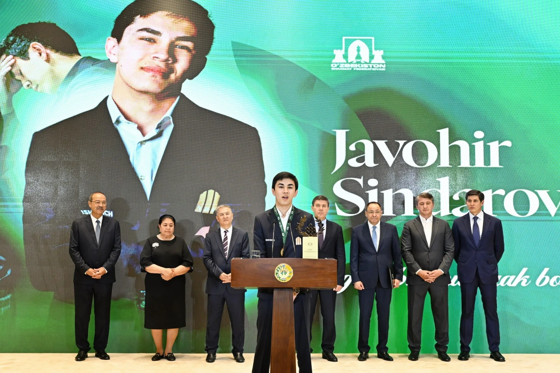 Tadbirda soʻz olgan rasmiylar shaxmatchimizni erishgan muvaffaqiyati bilan qutlashdi. Xususan, Abdulla Nigmatovich Javohir Sindarovni “Mehnat shuhrati” ordeni bilan mukofotlash haqidagi Oʻzbekiston Respublikasi Prezidentining Farmonini oʻqib eshittirdi.