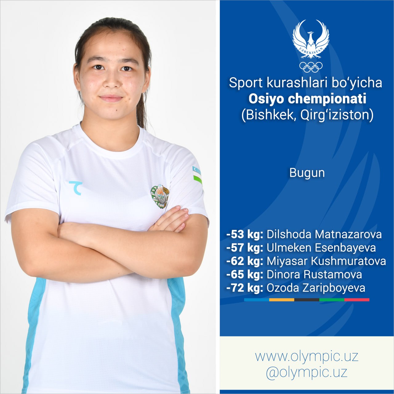 Bugun kurashchi qizlarimiz Osiyo chempionatidagi ishtiroklarini davom ettirishadi. Bishkek shahri me...
