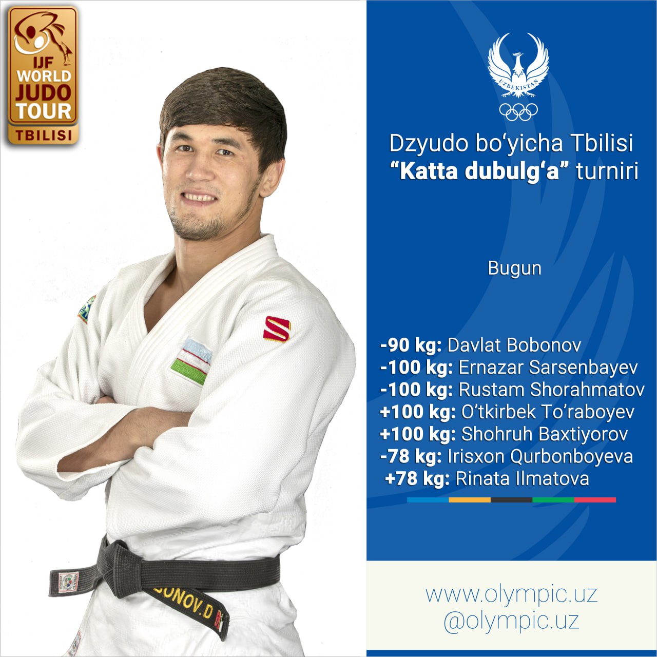 Bugun Gruziyada dzyudo bo’yicha Tbilisi “Katta dubulg’a” turniri o’z yakuniga yetadi. Og’ir vazn toi...