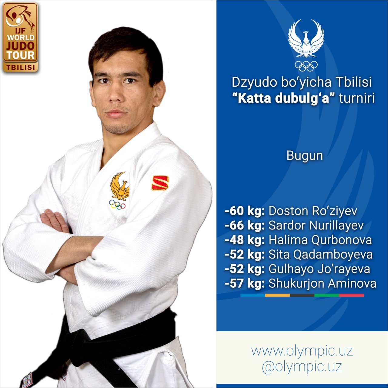 Bugun Tbilisi shahri (Gruziya)da dzyudo bo‘yicha “Katta dubulg‘a” turnirining ikkinchi kun bellashuv...