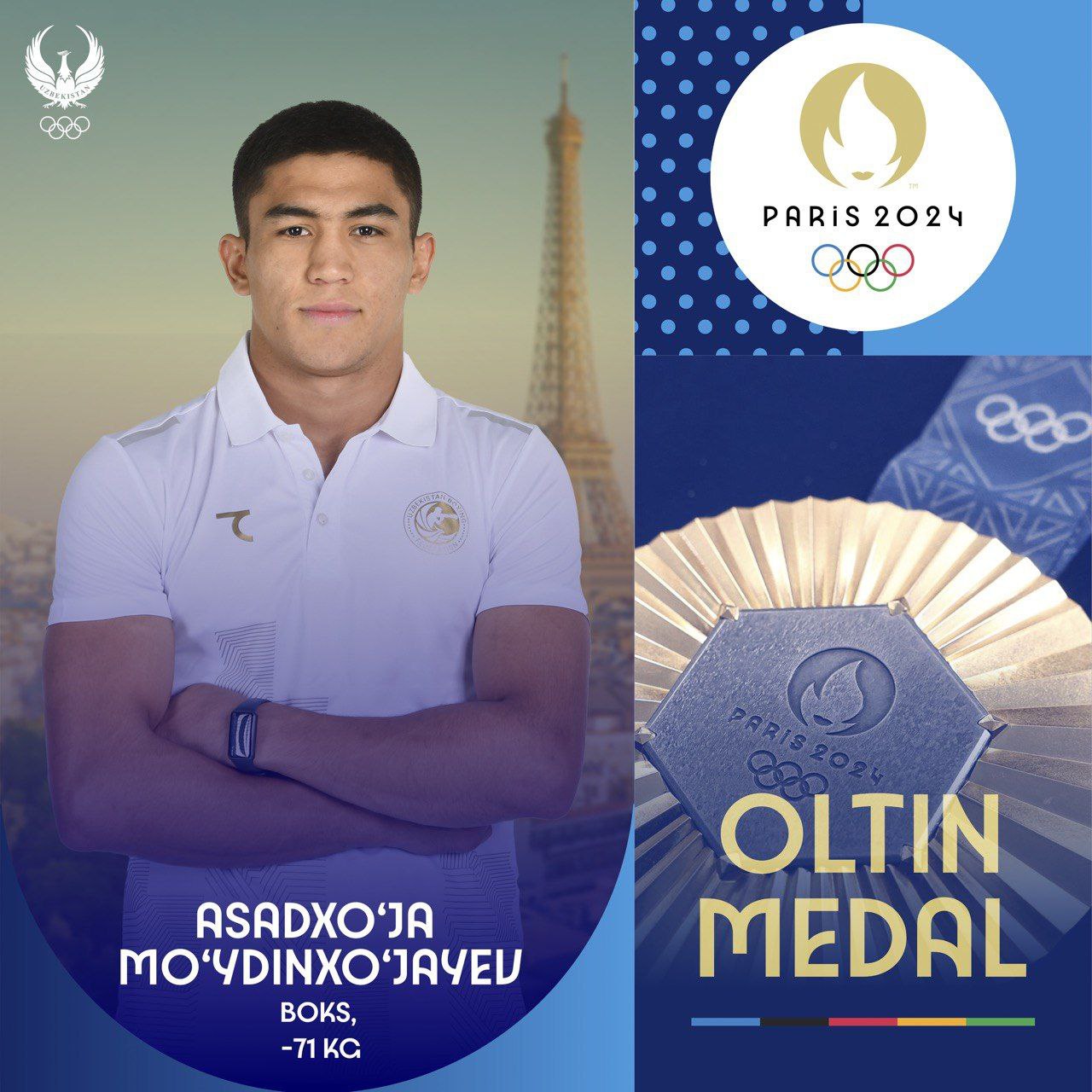 Parijdan yana bir xushxabar. Boks boʻyicha Oʻzbekiston terma jamoasi aʼzosi Asadxoʻja Moʻydinxoʻjaye…