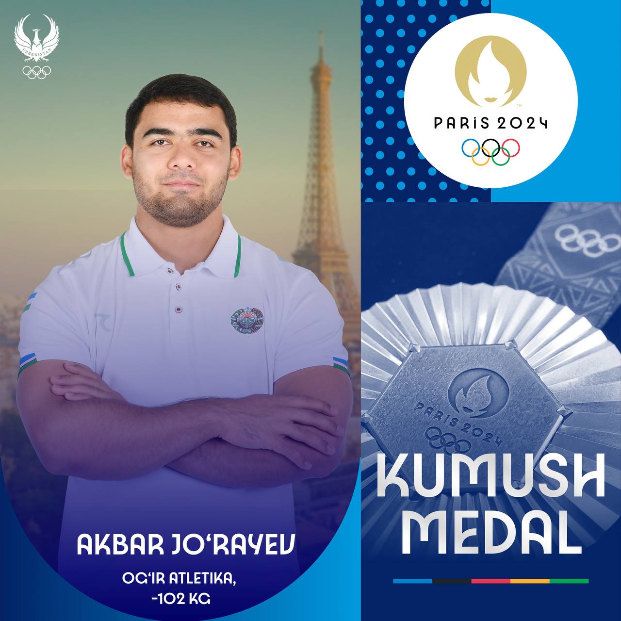 Og’ir atletika bo’yicha O’zbekiston terma jamoasi a’zosi Akbar Jo’rayev o’z sovrinlari orasiga Parij…