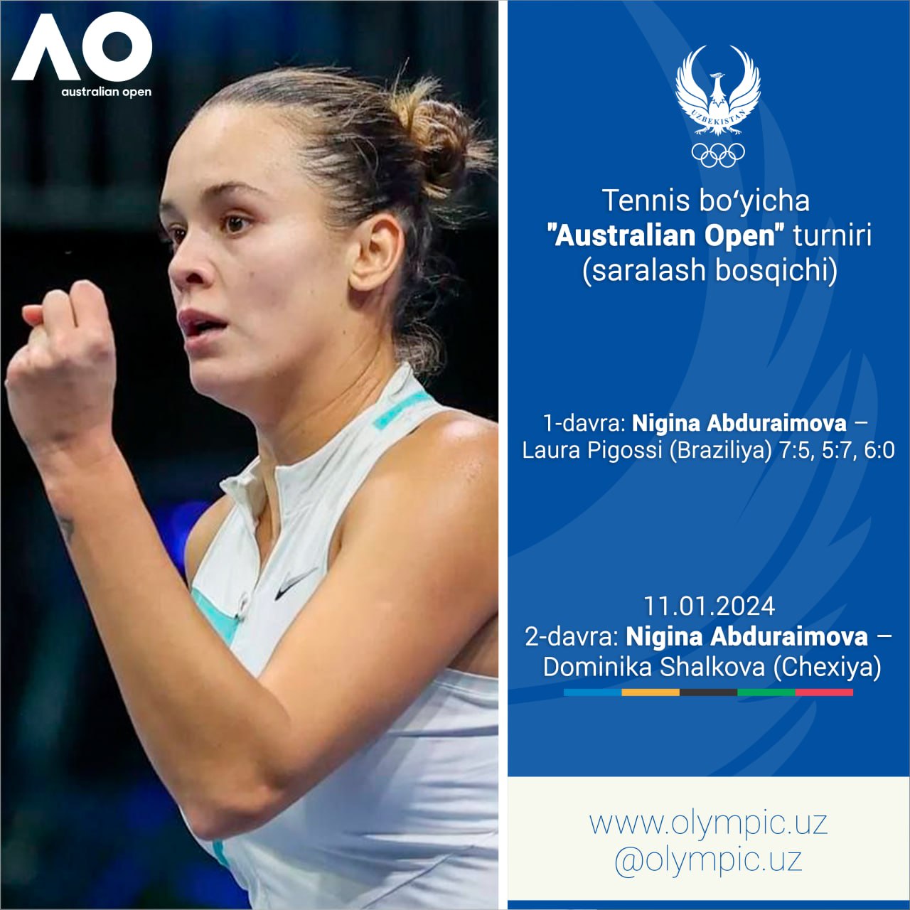 Tennis boʻyicha Oʻzbekiston terma jamoasi aʼzosi Nigina Abduraimova Avstraliya ochiq chempionatining...