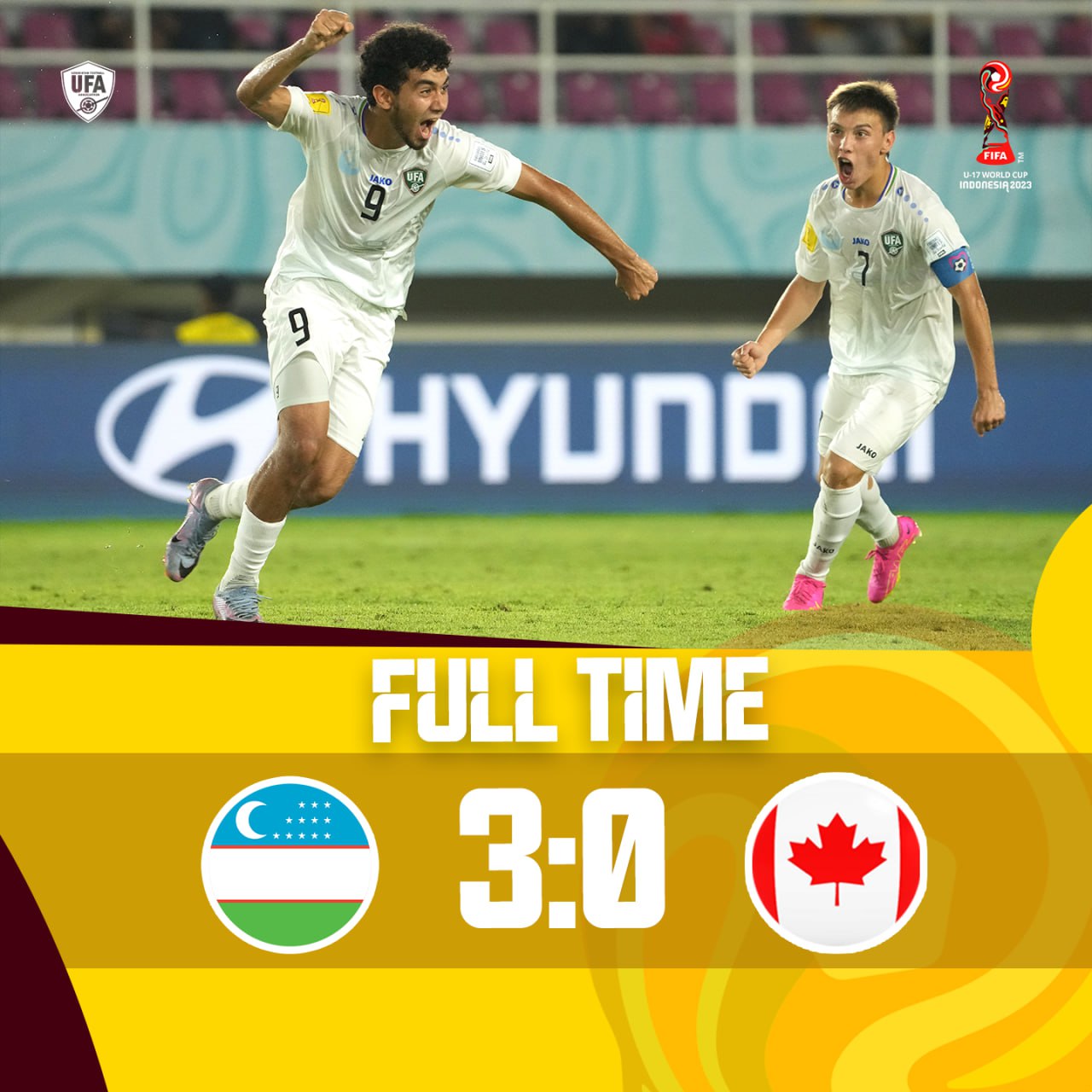 U-17 Jahon chempionati Oʻzbekiston 3 - 0 Kanada Gollar: R.Chukvu (avtogol) 22', A.Saidov 24...