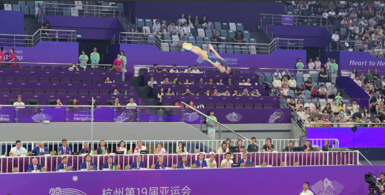 Trampolinda sakrash boʻyicha Oʻzbekiston terma jamoasi aʼzosi Mirshohid Hasanboyev Osiyo oʻyinlarini...