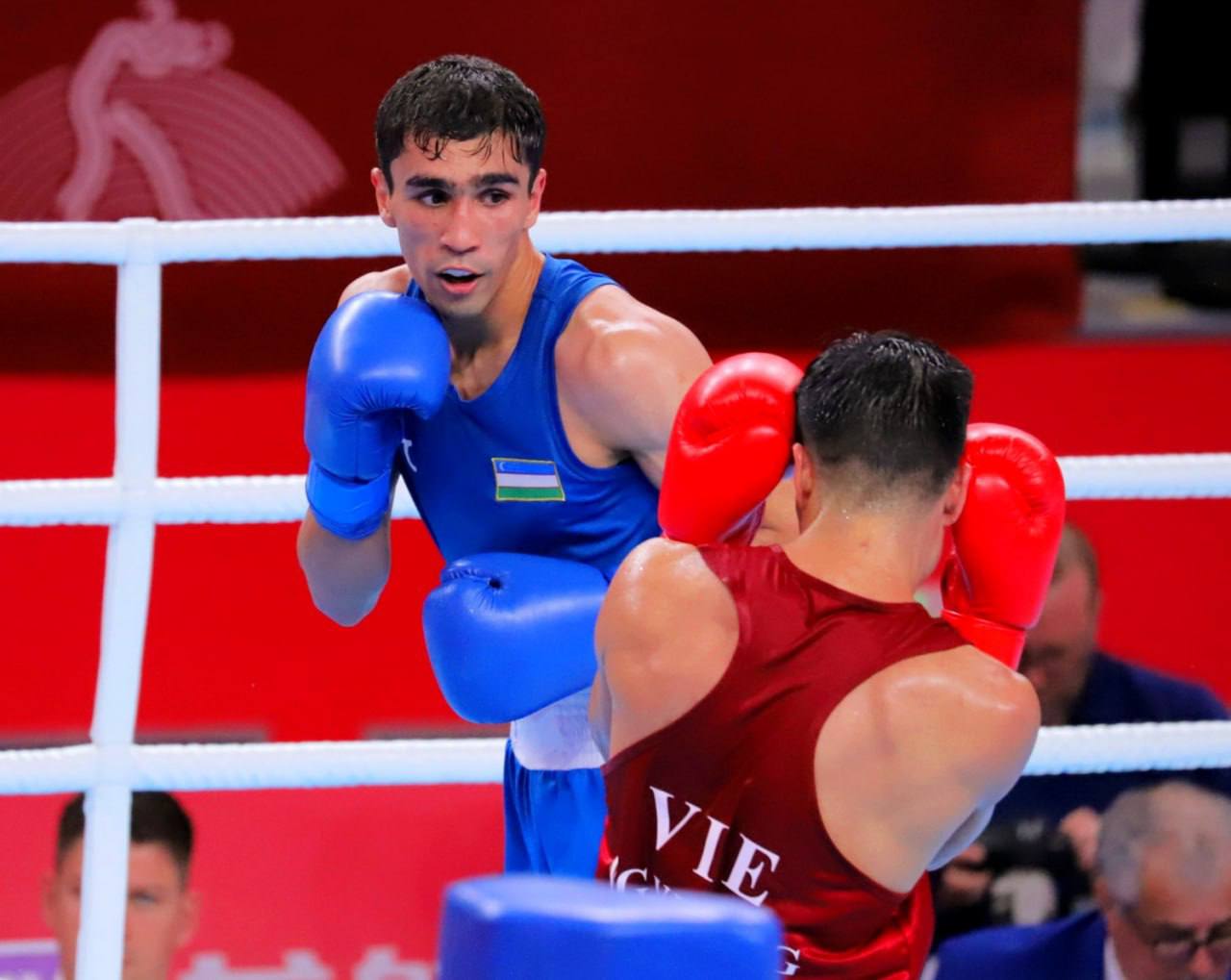 Boks boʻyicha Oʻzbekiston erkaklar terma jamoasi aʼzosi Abdumalik Xalokov yarim final yoʻllanmasini ...