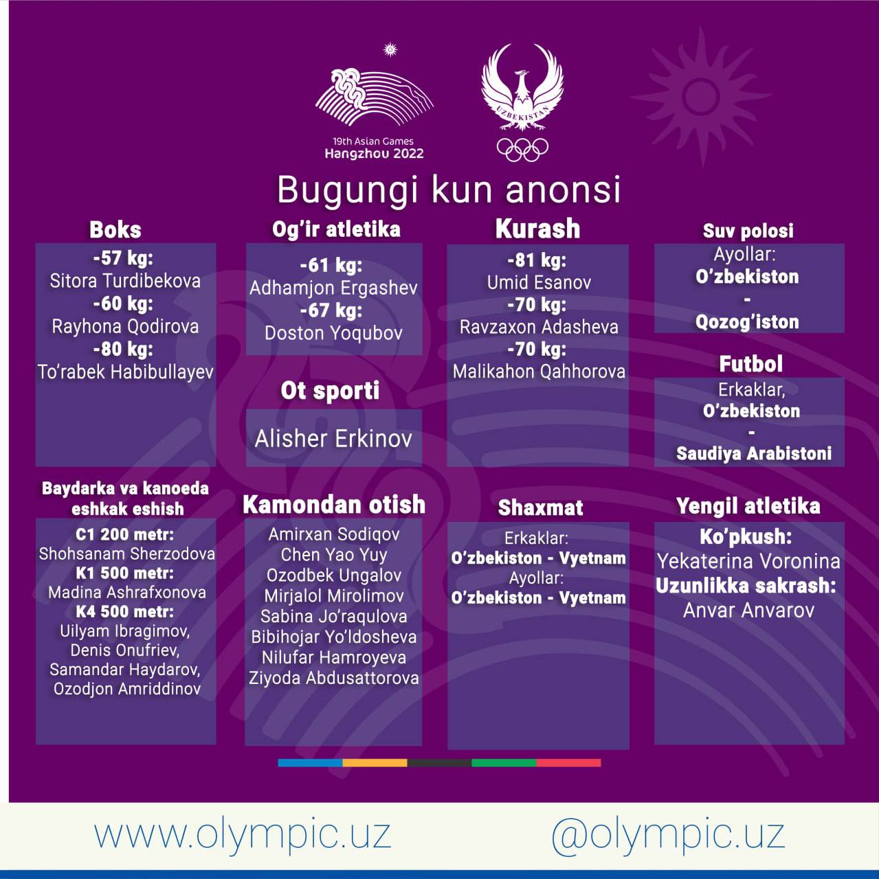 Bugun kechki dasturda yengil atletikaning ayollar oʻrtasidagi koʻpkurash dasturida gʻolib va sovrind...