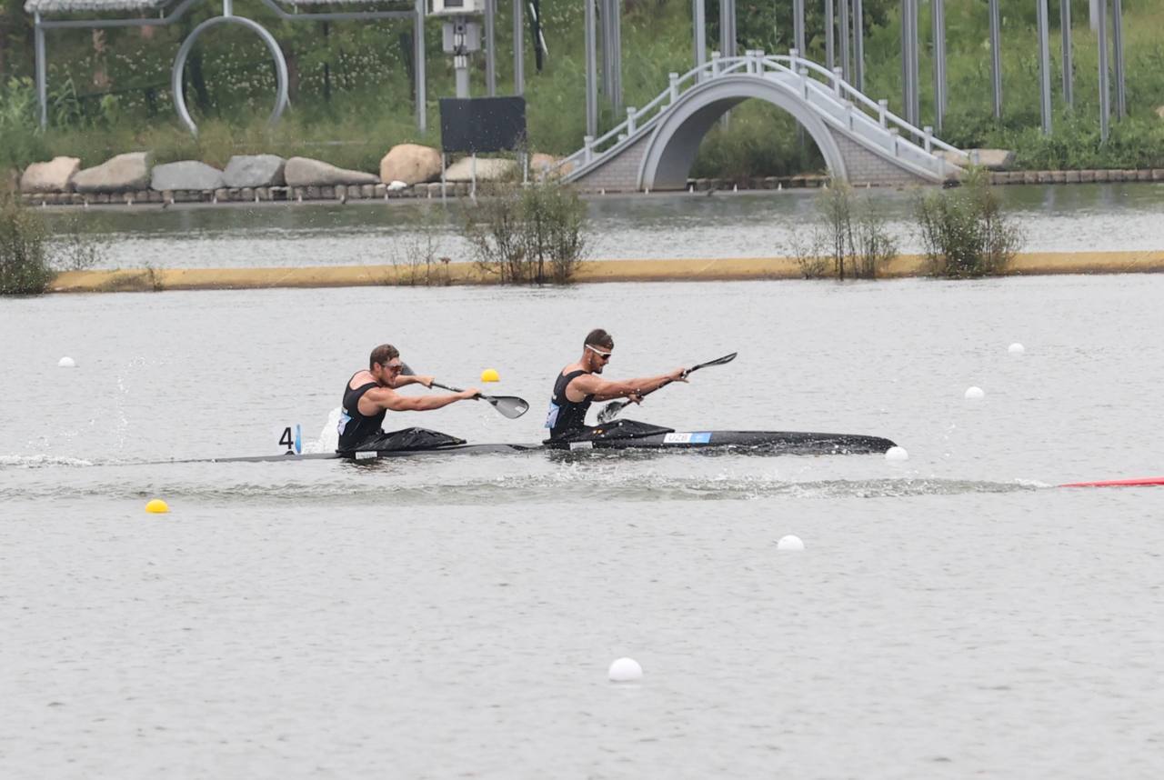 O’zbekiston terma jamoasi a’zolari Artur Guliyev hamda Kamron Ahtamovdan iborat kanoeda eshkak eshis...