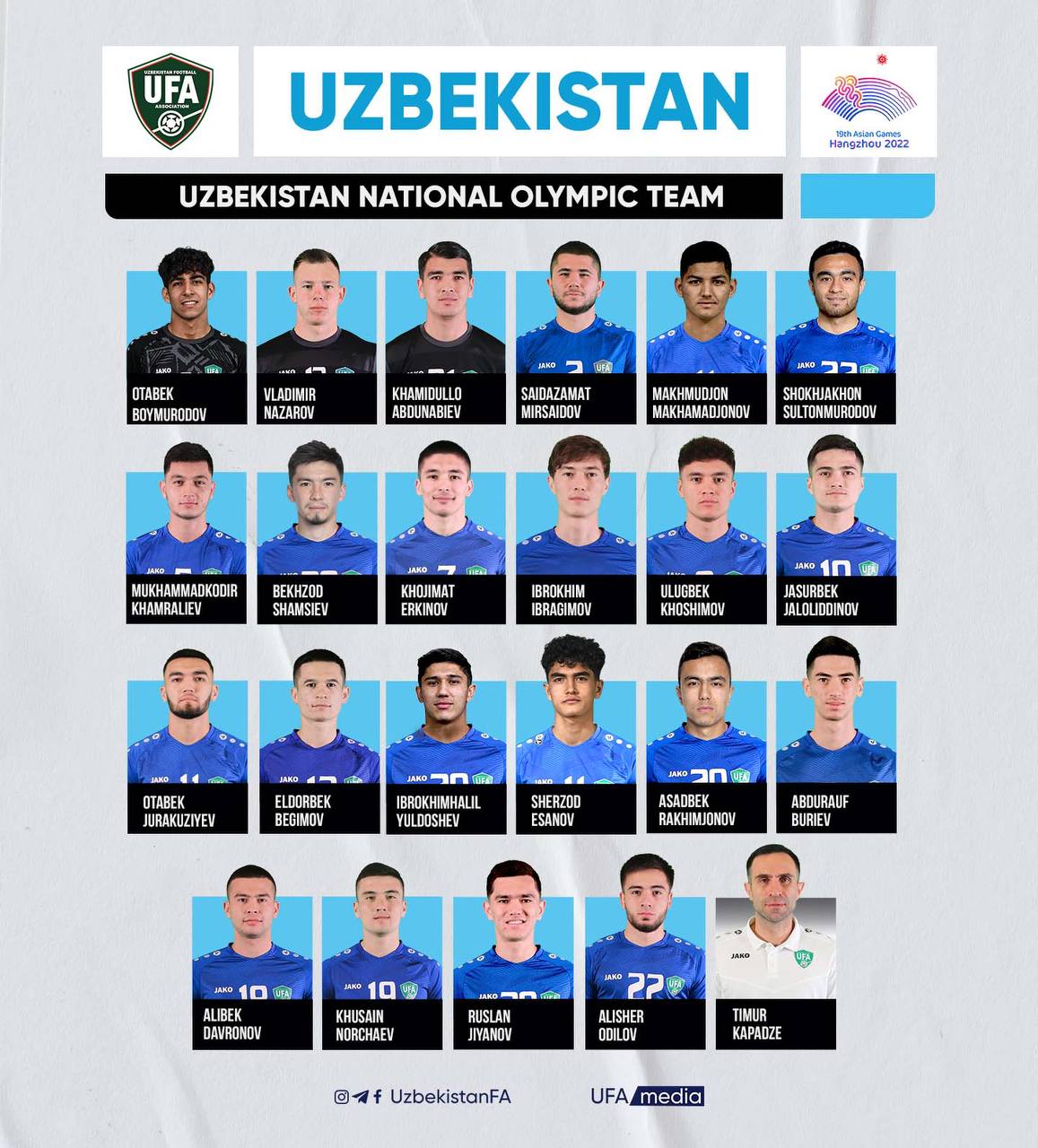 Xanchjou-2022 Osiyo oʻyinlarida jamoaviy sport turlarida ishtirok etadigan terma hamyurtlarimizdan u...