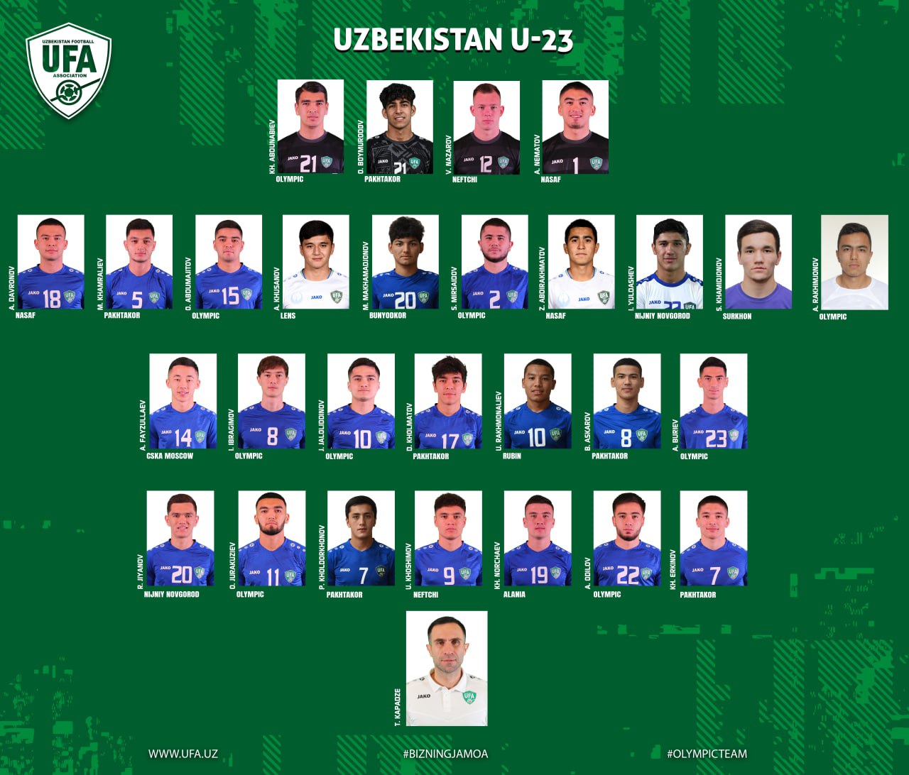 6-12-sentyabr kunlari Toshkentda oʻtadigan futbol boʻyicha 2024-yilgi U-23 Osiyo kubogining saralash...
