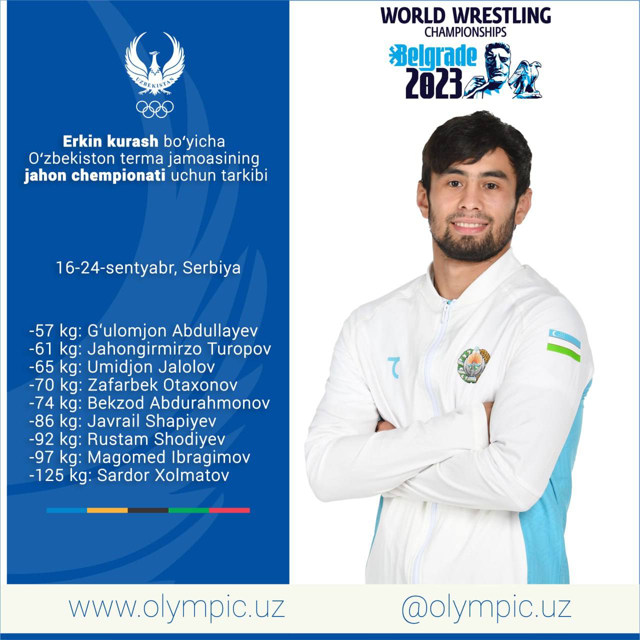 16-24-sentyabr kunlari Serbiyaning Belgrad shahrida sport kurashlari boʻyicha jahon chempionati boʻl...