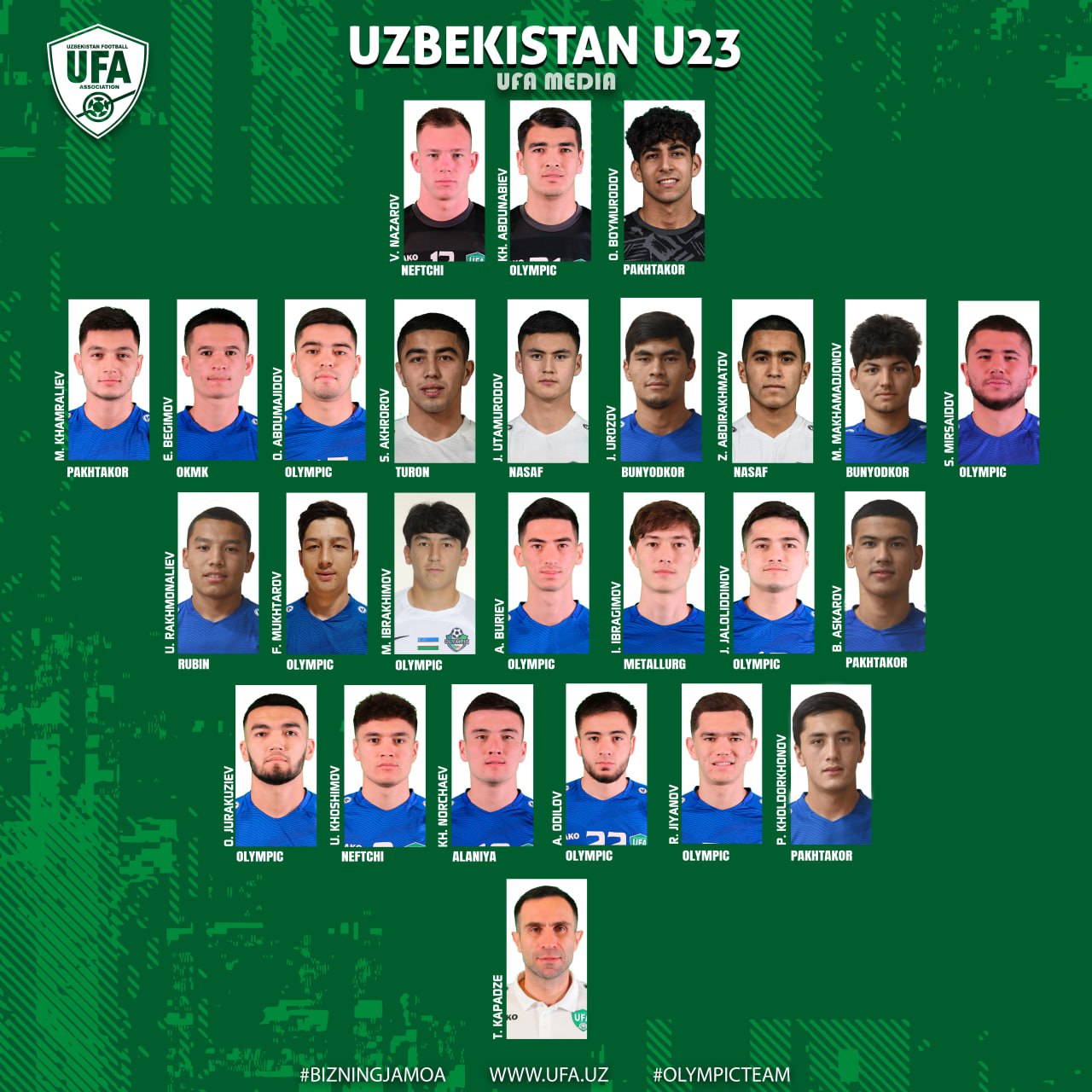Futbol boʻyicha Oʻzbekiston Olimpiya terma jamoasi 6-iyun kuni Toshkentda navbatdagi oʻquv-mashgʻulo...