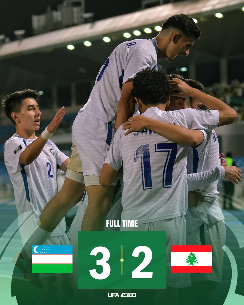 U23 Osiyo kubogiOʻzbekiston 3 — 2 Livan Gollar: A.Saidov 24’, R.Xayrullayev 50’. S.Bahromov 57’ — L...