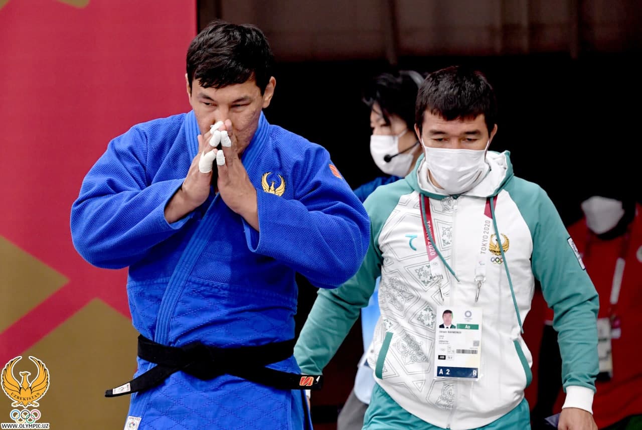 Dzyudochimiz Bekmurod Oltiboyev Tokio-2020 Olimpiya o‘yinlari doirasida chorak final bellashuvini o‘...