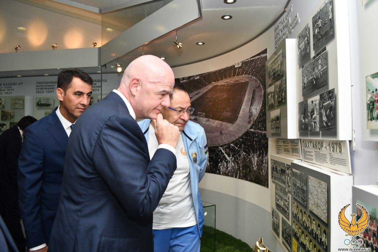 Президент ФИФА Джанни Инфантино посетил стадион “Бунёдкор“, чтобы воочию следить за матчем “Бунёдкор“ - ”Олимпик”