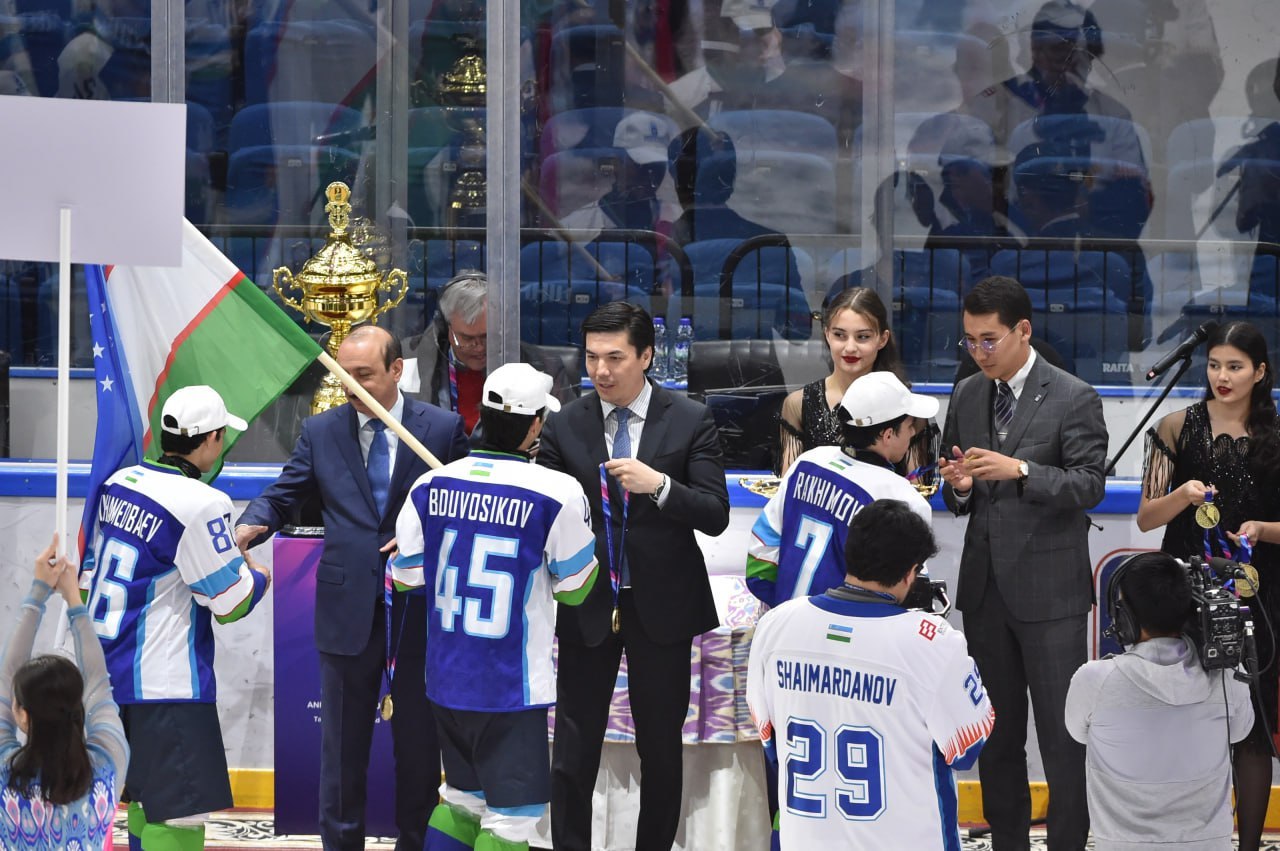 Успех наших юных хоккеистов на чемпионате Азии и Океании в очередной раз показал, что в нашей стране развиваются не только командные, но и зимние виды спорта. Отечественные хоккеисты, вышедшие на поле, чтобы защитить чемпионский титул, смогли завоевать главный трофей турнира. В церемонии награждения приняли участие руководство Международной федерации хоккея на льду, Министерства спорта Республики Узбекистан и Национального Олимпийского комитета, которые поздравили юных хоккеистов с достигнутым успехом.