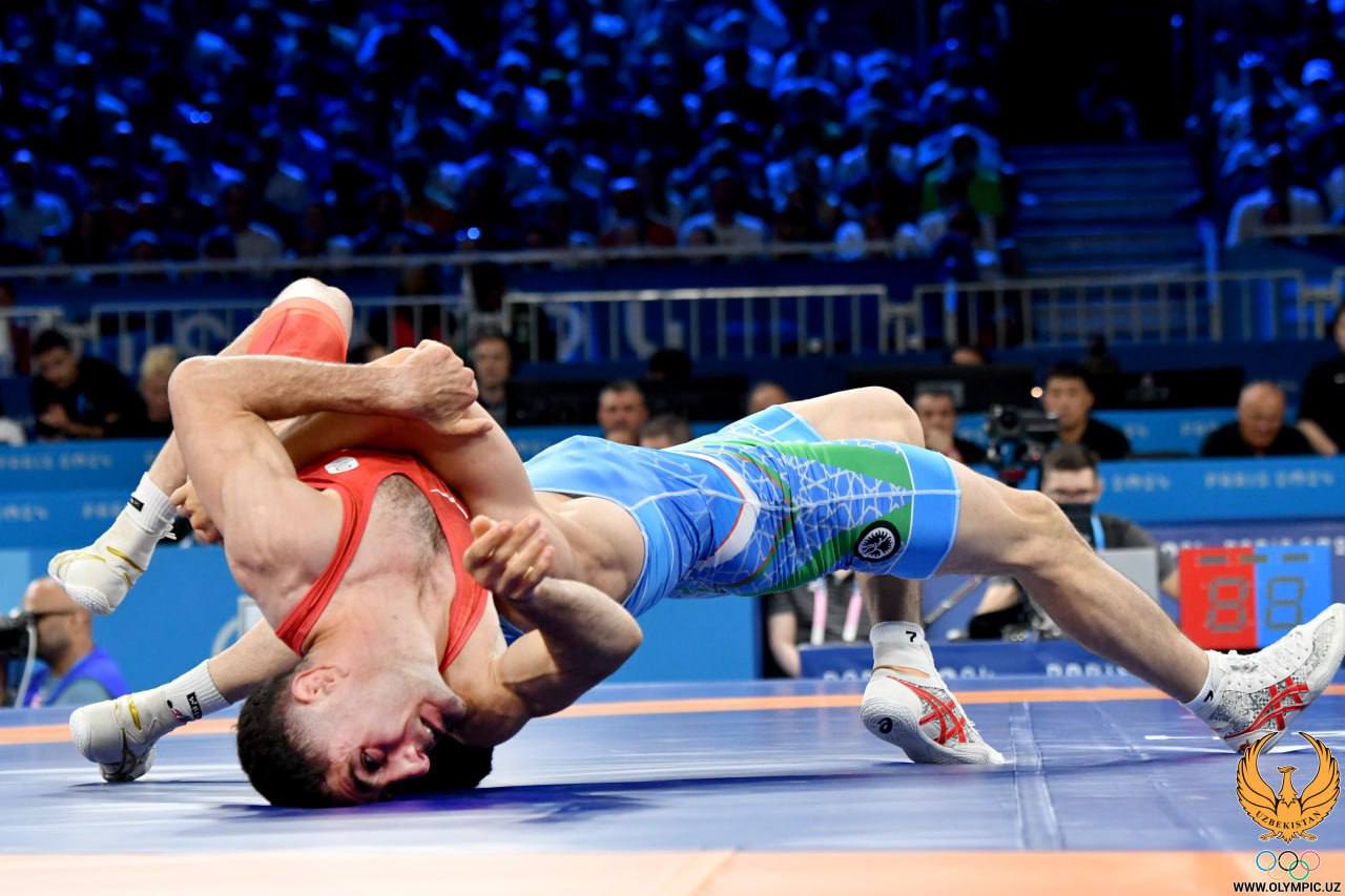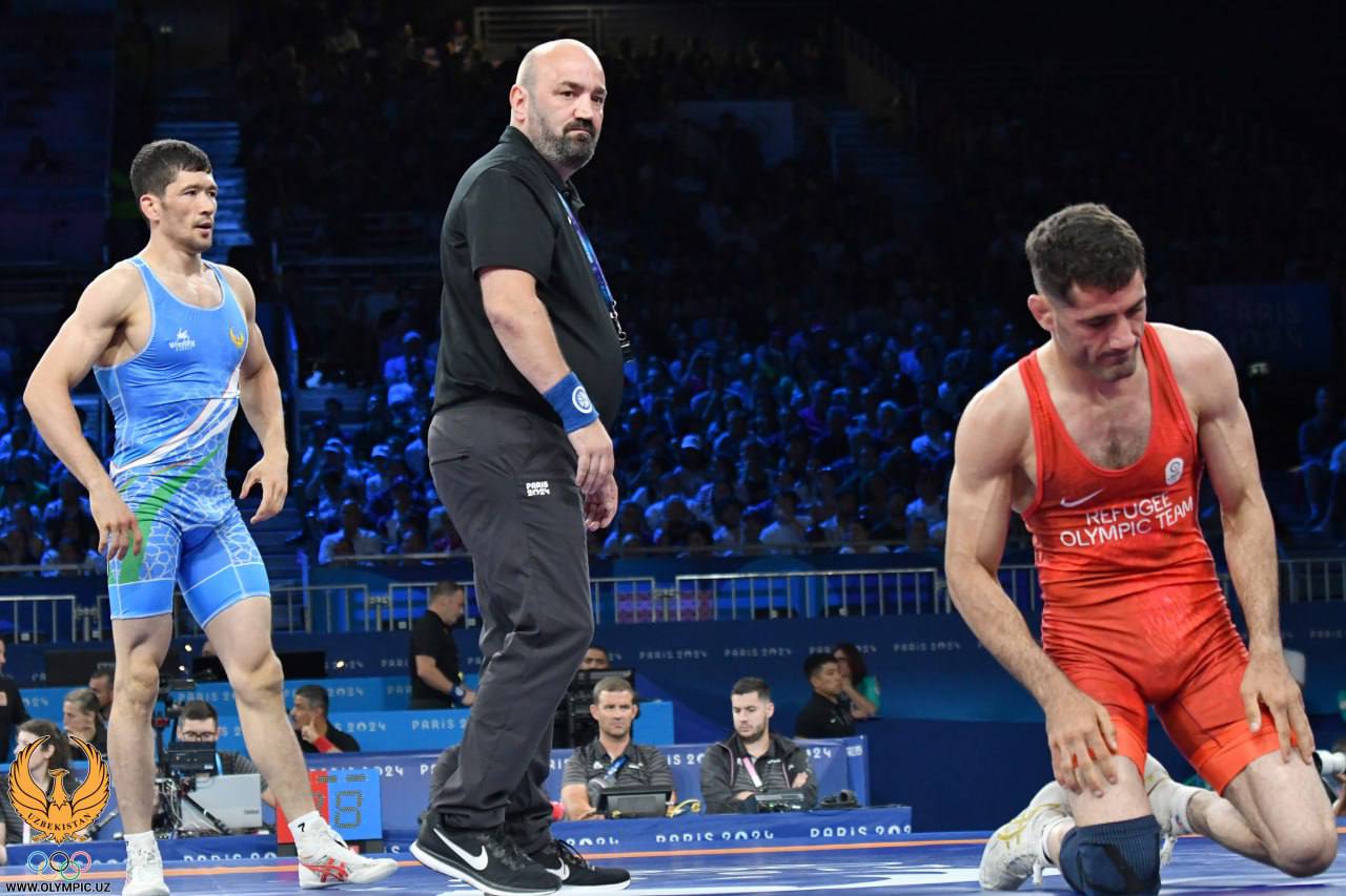 Фотогалерея поединка Ислома Бахромова, который пробился в четвертьфинал с явным преимуществом, 9:0