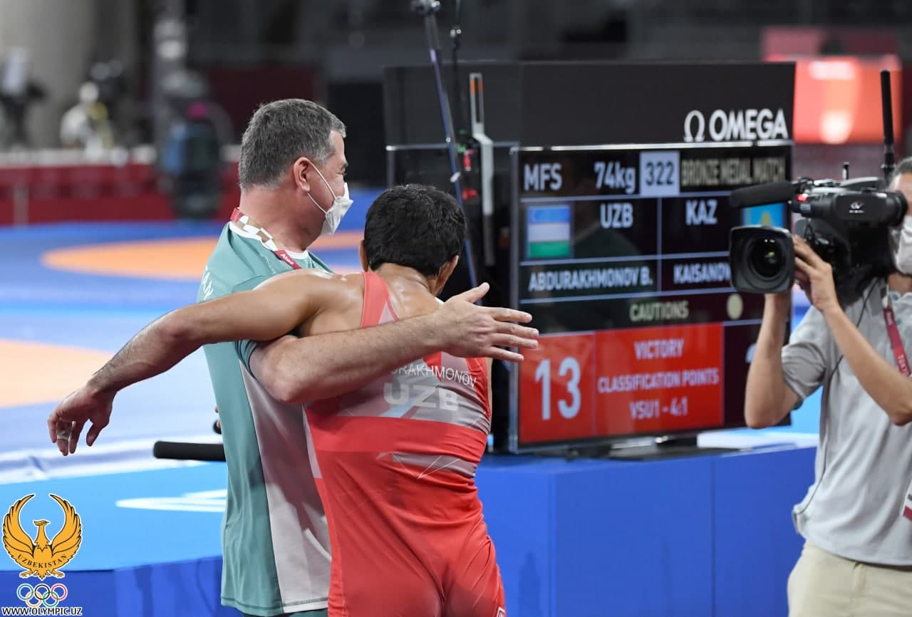 Несколько минут назад наш вольный борец Бекзод Абдурахманов выиграл в схватке за бронзу и добавил ещё одну медаль в копилку делегации Узбекистана. Теперь он имеет медали со всех соревнований, в которых принимал участие. Представляем вашему вниманию фотографии с победоносной схватки, а также, церемонии награждения Абдурахманова: