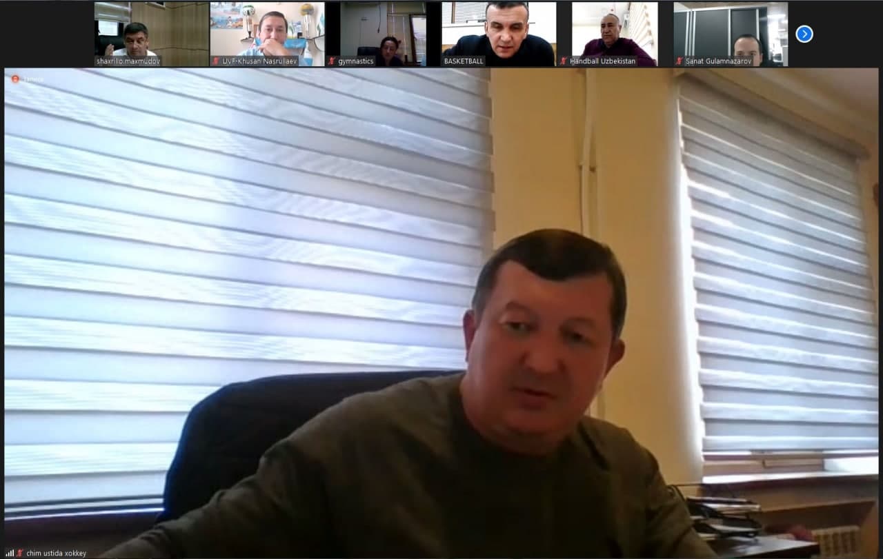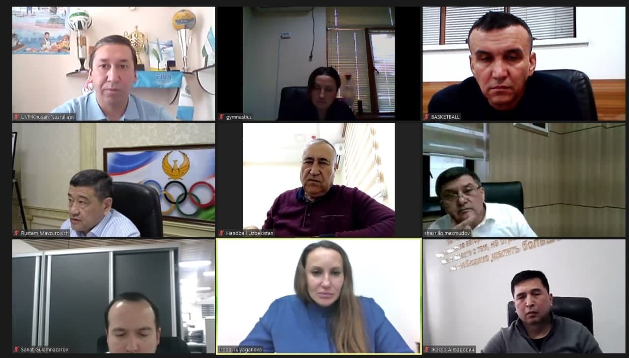 На платформе ZOOM состоялось онлайн-совещание, посвящённое вопросам достойного участия в Азиатских играх Ханчжоу-2022 и получения лицензий на Олимпийские игры Париж-2024. В нём приняли участие председатель НОК Рустам Шаабдурахманов, заместитель министра Туризма и спорта Шахрилло Махмудов, руководство школы Высшего спортивного мастерства, представители некоторых Федераций. На онлайн-конференцию в основном были приглашены Федерации, у которых получение лицензий на Олимпиаду Париж-2024 находится под вопросом. Совещание провёл Шахрилло Махмудов, и главным вопросом, который обсуждался в ходе беседы, стало дальнейшее усиление работы с Национальными командами, а также улучшение созданных условий.