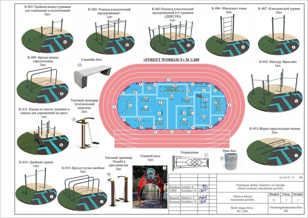 Для информации за прошедший период в районе в 12 махаллинских сходах граждан, таких как “Токувчи”, “Орзу”, “Юкори Гирвон”, “Порлок”, “Орта Ровустон”, “Навбахор”, “Юкори Ровустон”, “Елхон”, были сданы в эксплуатацию спортивные площадки для занятий Work out, Streetball и 17 штук спортивного инвентаря стоимостью в 15 млн. сумов для населения.