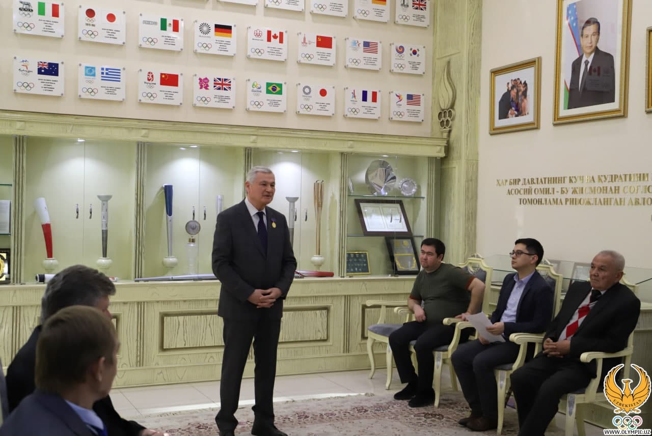 "Прежде всего, мы очень рады видеть Вас ещё раз в нашем Комитете. Вы - наши наставники. Олимпийское движение, начатое Вами несколько лет назад в стране, сегодня продолжается нами. Сколько бы мы ни говорили о Вашем вкладе в развитие спорта Узбекистана, нельзя выразить это словами. Команда Совета ветеранов во главе с Баходиром Махситовым в последнее время работает довольно активно. Мы готовы оказать всю необходимую помощь", – сказал Ойбек Касимов.