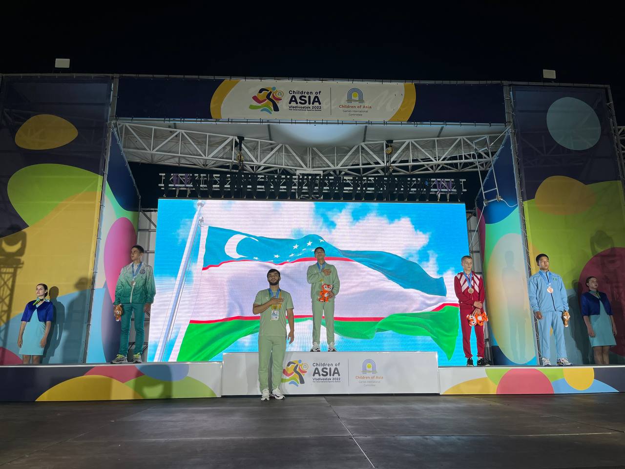Сегодня на Играх "Дети Азии" во Владивостоке, делегация Узбекистана завоевала в общей сложности 16 медалей различного достоинства (11-золотых, 3-серебряные, 2-бронзовые).