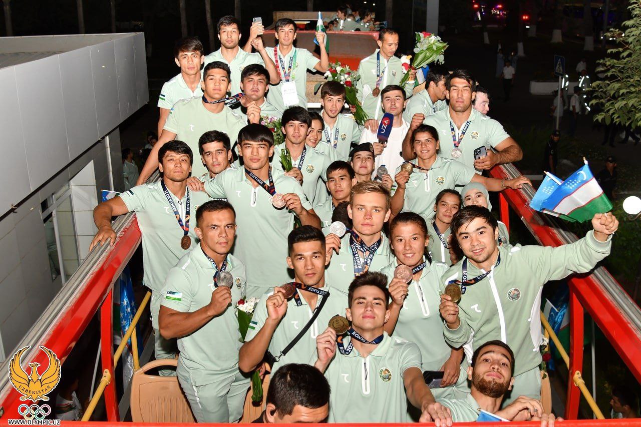 Народный поэт Узбекистана Махмуд Тоир, а также известные представители узбекской эстрады подарили всем участникам и гостям торжественного мероприятия хорошее настроение. Затем представители делегации Узбекистана сели в выделенные специальные автобусы и отправились по центральным улицам нашей столицы в Национальный Олимпийский комитет. Наших успешных соотечественников приветствовали все, кто вышли встречать и поздравлять по всем улицам, которые проезжали атлеты. Все, безусловно, были в огромном восторге и гордости за спортсменов, проявившие настоящий фурор на турецкой арене.